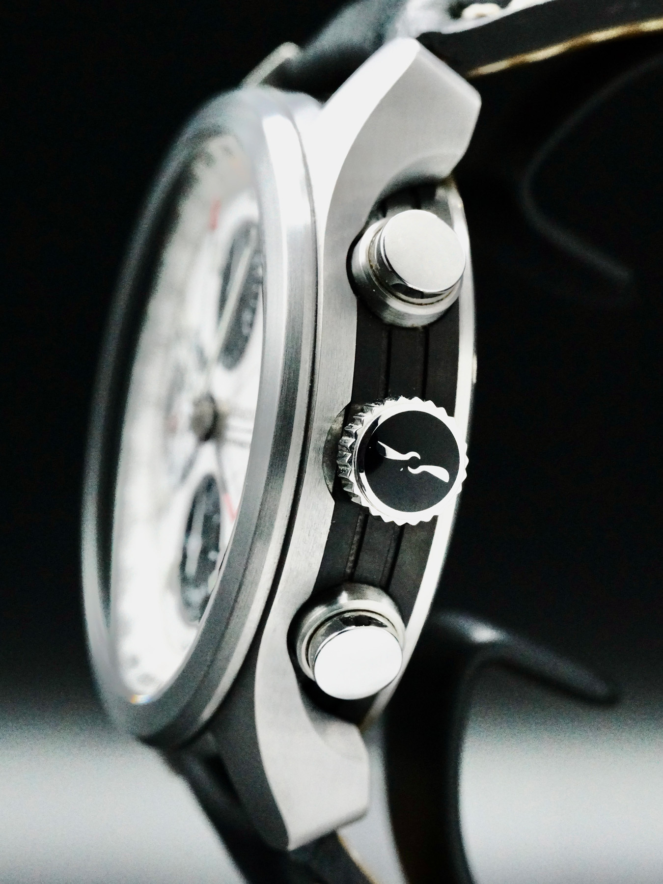 This watch features a 43mm steel case on leather strap. This watch also sports a white dial. Powered by a Mechanical Automatic Movement. Water resistance up to 100 meters.