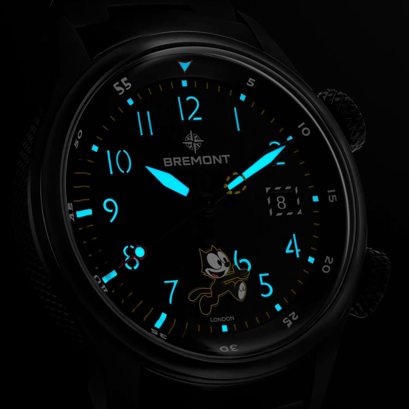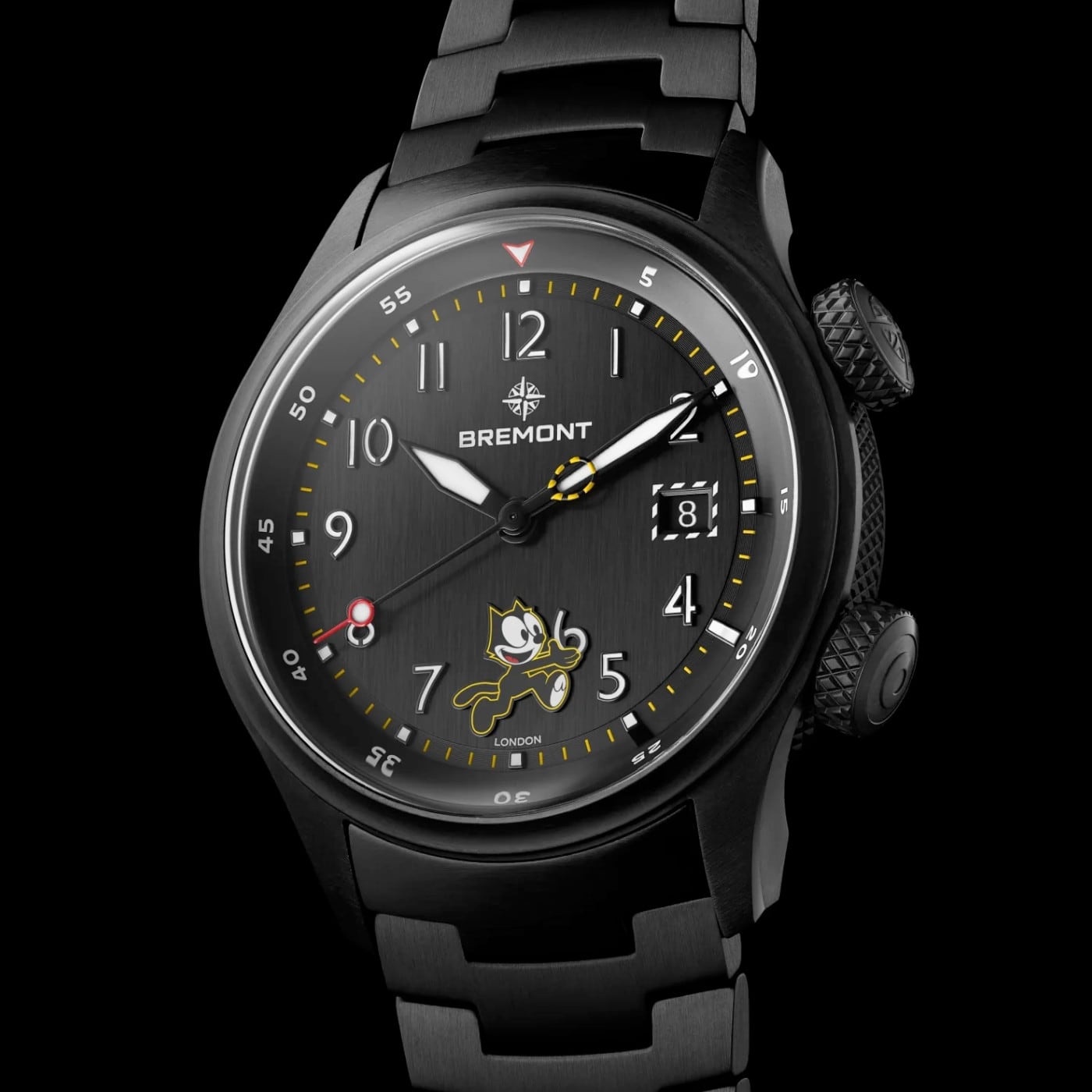 This playful collaboration celebrates Bremont’s long-standing commitment to military aviation with ‘Felix the Cat’, a character whose legacy in the skies spans generations, serving as a mascot for several squadrons and having been painted on their aircrafts.