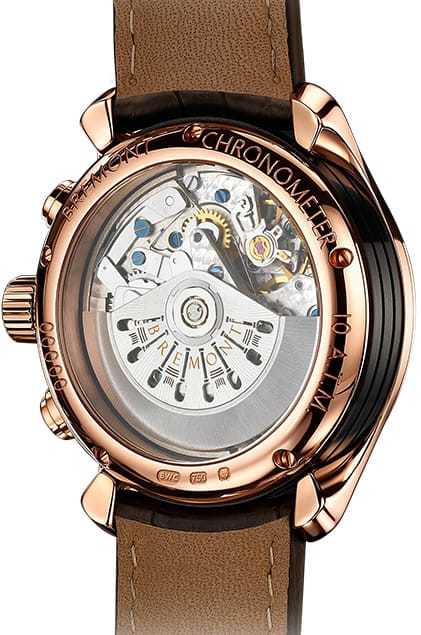 18 carat rose gold Bremont Trip-Tick® construction with scratch-resistant DLC treated case barrel.