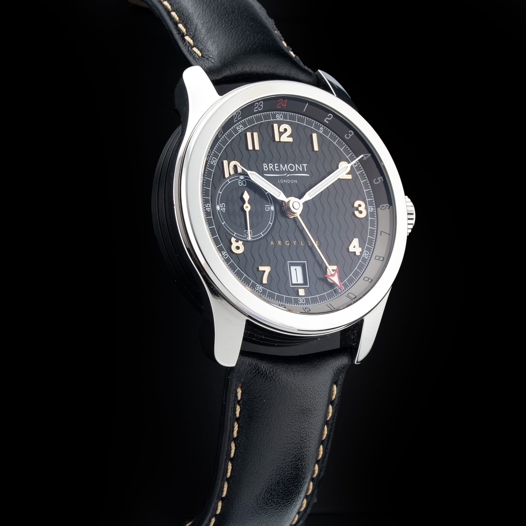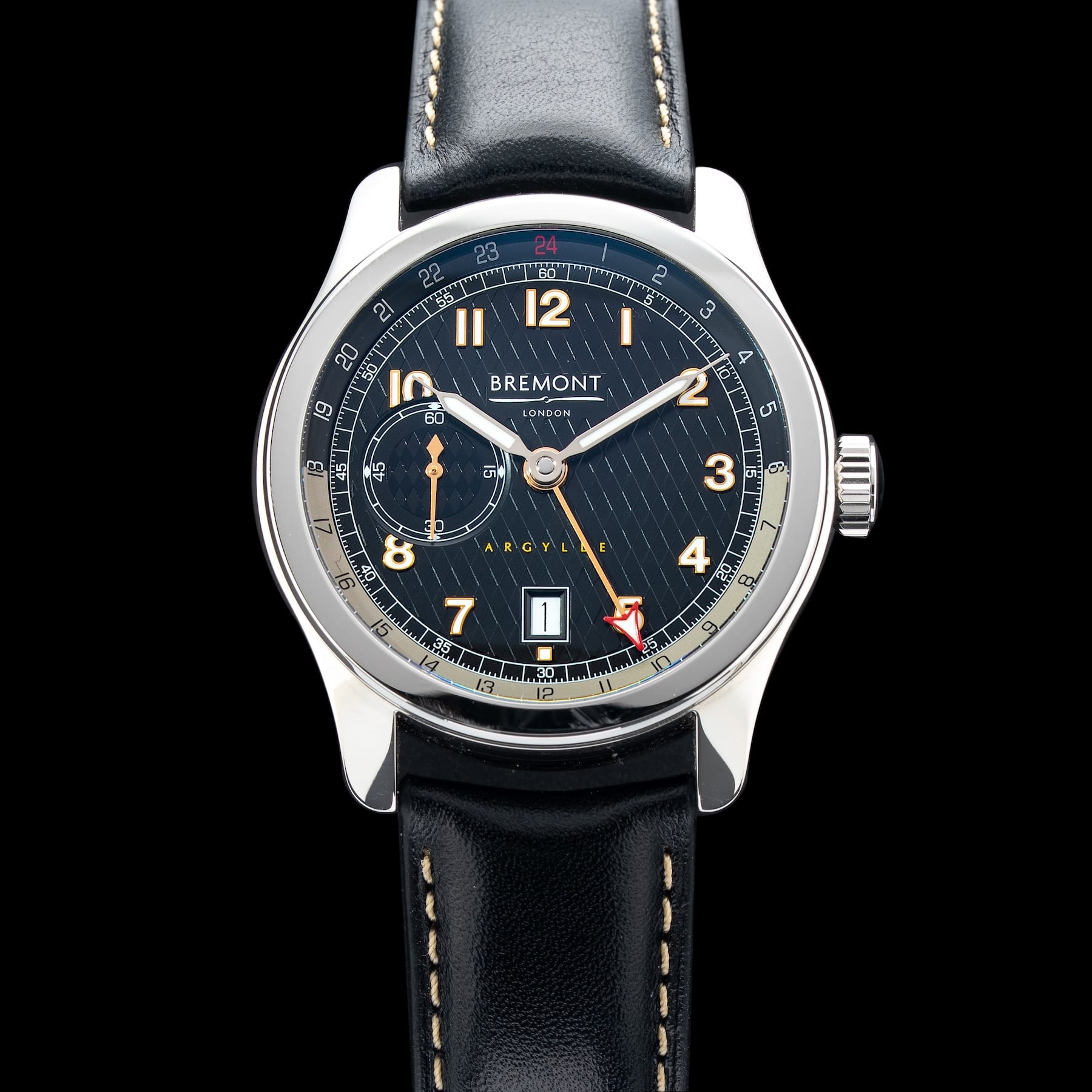 This Bremont Argylle GMT Limited Edition SOLO43-ARGYLLE-L-S is in GREAT condition. This watch includes its Original Box, Original Papers and warranty card dated 03/17/2025. This watch has been fully authenticated and certified by Exquisite Timepieces.