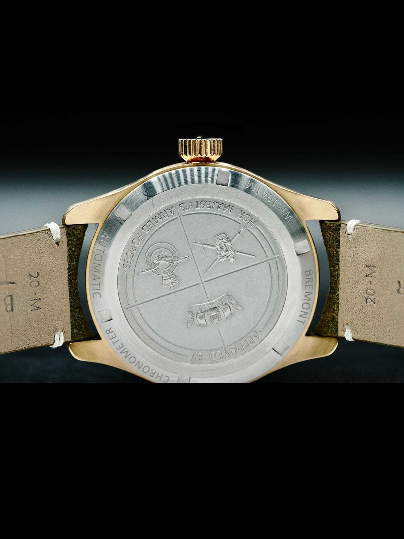 This Bremont Broadsword Bronze Tobacco features a 40mm bronze case on leather strap. This watch also sports a tobacco dial. Powered by a mechanical automatic movement. Water resistance up to 100 meters.