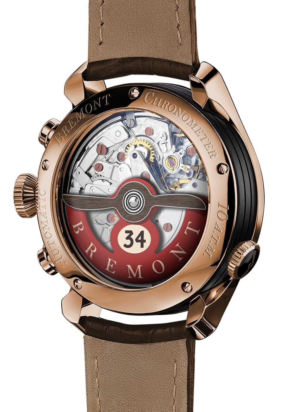 18 carat rose gold Bremont Trip-Tick® case construction with scratch-resistant DLC treated case barrel with vintage style crowns.