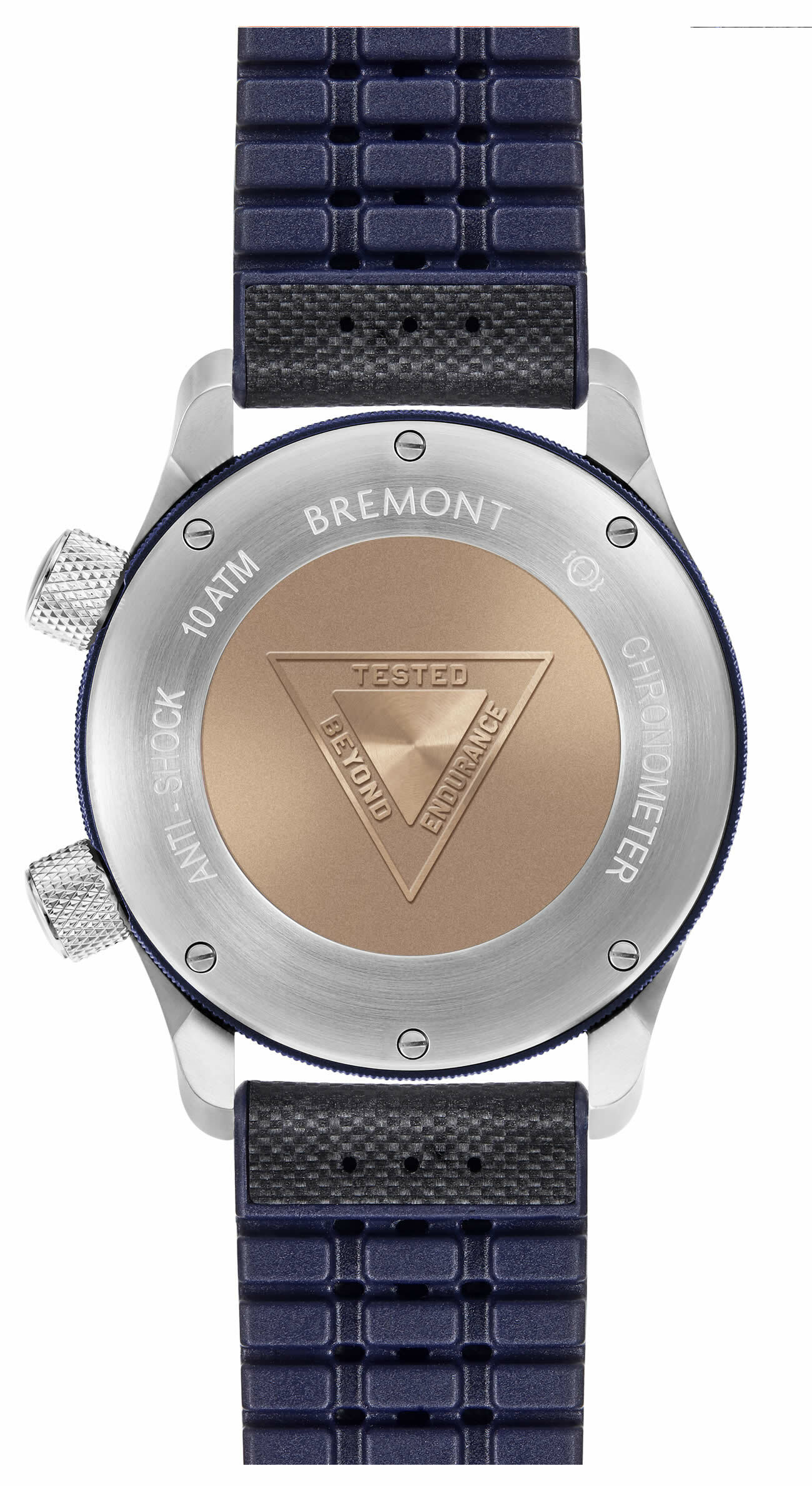 Martin-Baker is a British aviation company responsible for supplying 70% of the world’s air-forces with fighter ejection seat technology. They first approached Bremont to create the definitive aviation watch in 2007/08. More than simply putting a logo on an existing model, the watch had to withstand the same rigorous testing programme as the ejection seats themselves including Live Ejection Testing, MFOS Crashworthy Testing, Extreme Temperature Endurance, Vibration Testing, Altitude Testing and Aircraft Carrier Deck Testing. Powered by the modified calibre BE-36AE chronometer movement with 38-hour power reserve, this brand new MBII design boasts bolder and more readable hands and a more contemporary styling of the numerals for an exceptionally clean look. Its newly designed case back is inset with a bronze coloured "military challenge coin", historically used to represent membership of a unit/elite group of people or service on a specific tour of duty. Whilst the open case back alternative showcases the beautiful movement with its brand new black automatic bridge, designed to be more shock resistant.
