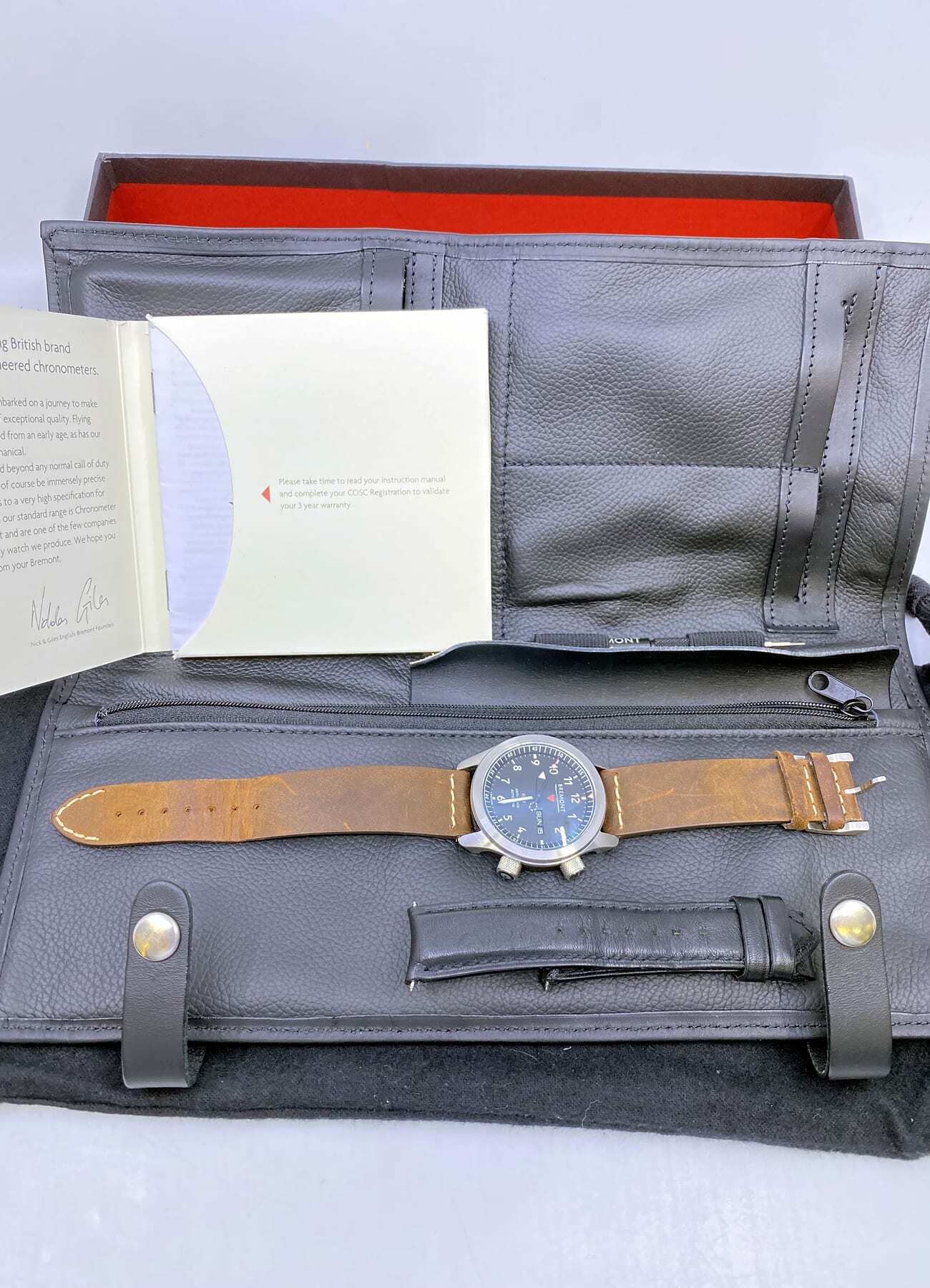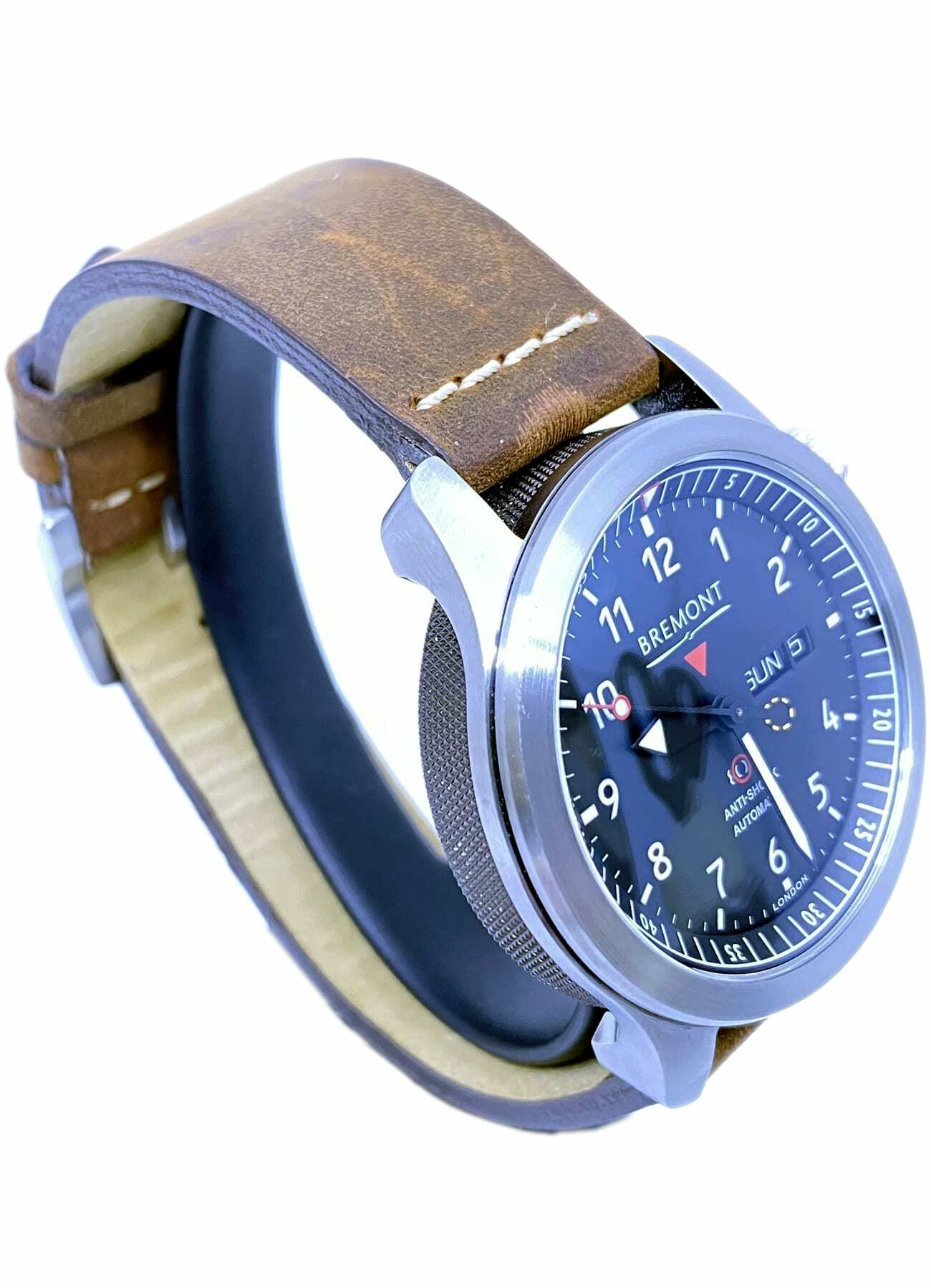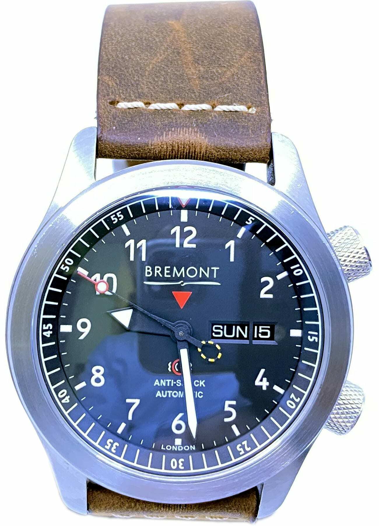 - This timepiece features a 43mm steel case paired with a high quality leather strap. It showcases a distinctive black dial and is powered by a precise automatic winding movement. The watch is designed with a water resistance of up to 100m.