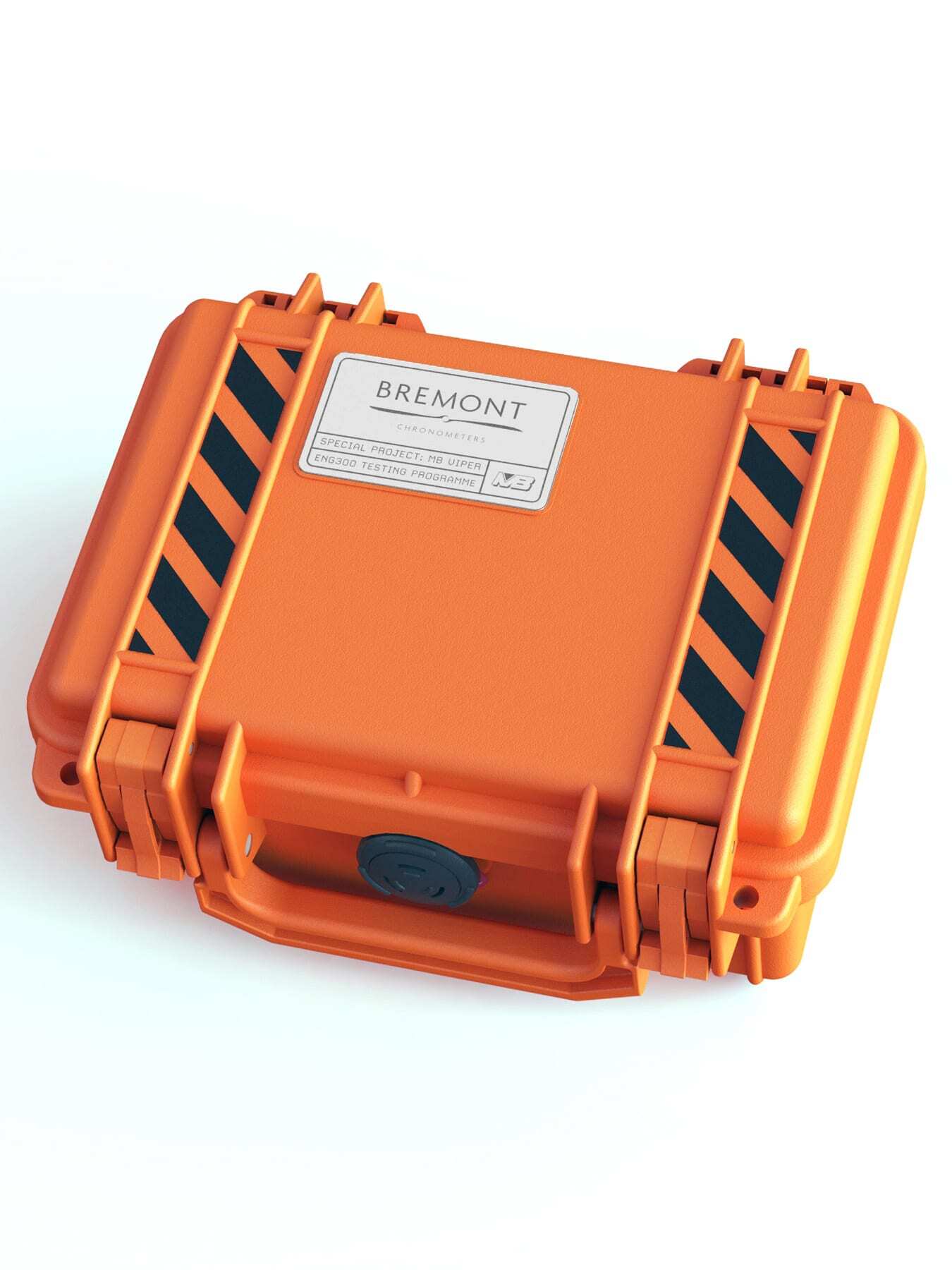 Introducing the limited edition Bremont MB Viper, a groundbreaking pilot's watch born from the collaboration between Bremont and Martin-Baker. Designed to endure extreme testing environments, equivalent to fighter ejection seat technology, this lightweight timepiece is crafted from titanium and anodized aluminum. The MB Viper showcases Bremont's ENG300 movement and features a 43.5mm matte DLC Grade 5 titanium case with a carbon coating and anodized aluminum case middle. With a self-winding ENG352 calibre, 65-hour power reserve, and Bremont's patented Anti-Shock movement mount, this watch offers exceptional performance. The vibrant orange case middle, chevron-decorated hands, and white dial with Super-LumiNova® markers create a highly legible and striking aesthetic. Limited to 300 pieces, the MB Viper represents Bremont's expertise in design, engineering, and manufacture. Experience the ultimate pilot's watch that has surpassed rigorous testing and redefined the standards of aviation timepieces.