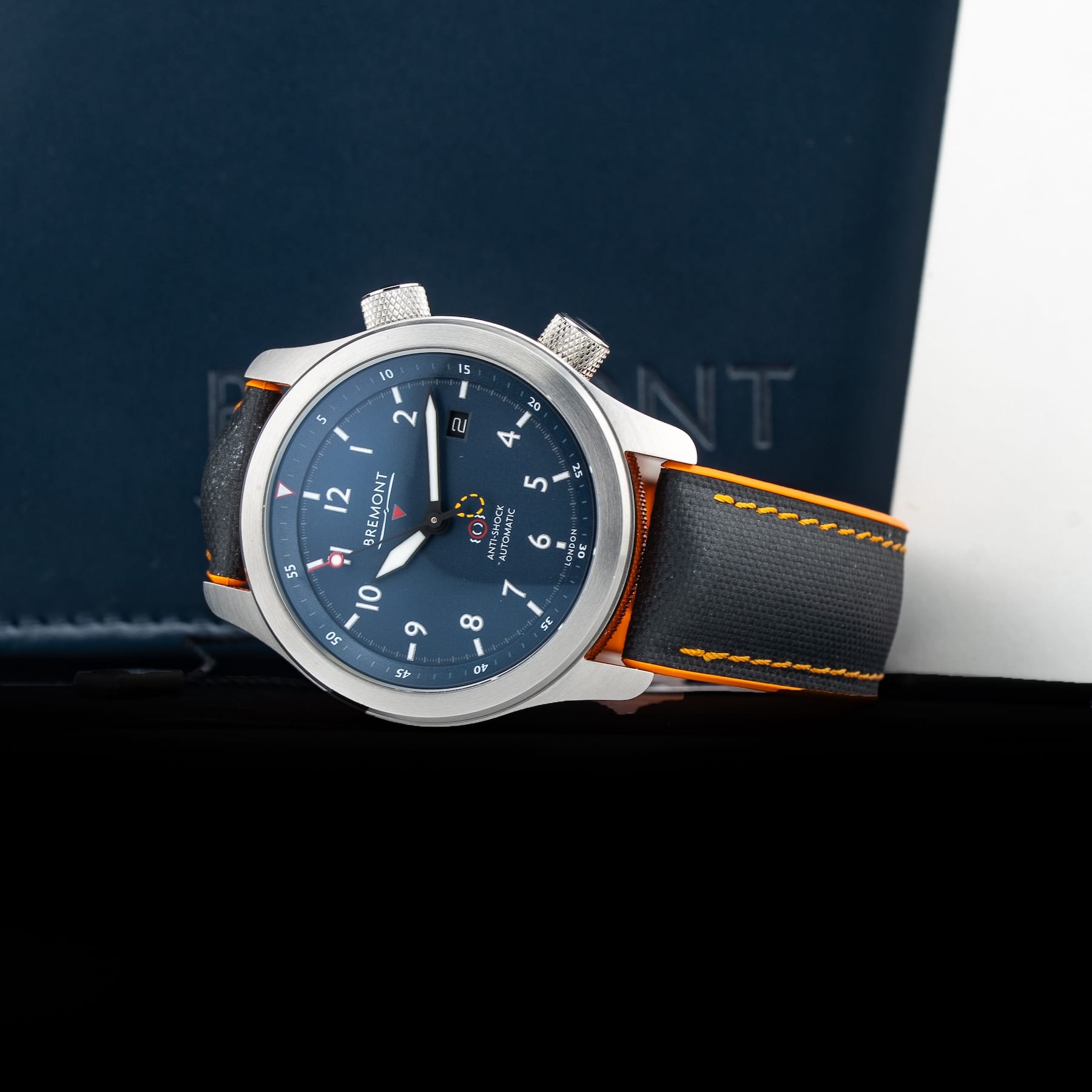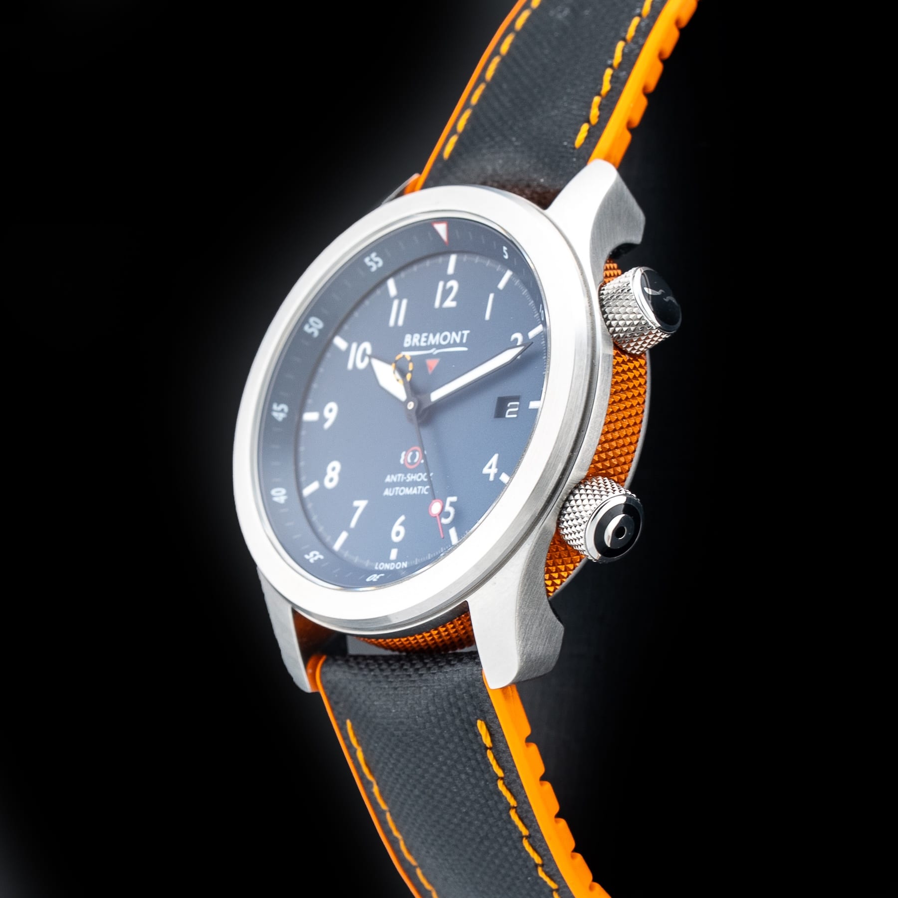 This Bremont MBII-SS-BL-C-O-P-11R is in GREAT condition it has travel case only, warranty card dated 04/04/2025. This watch has been fully authenticated and certified by Exquisite Timepieces. Please note, the photos shown are of the actual watch you will receive.