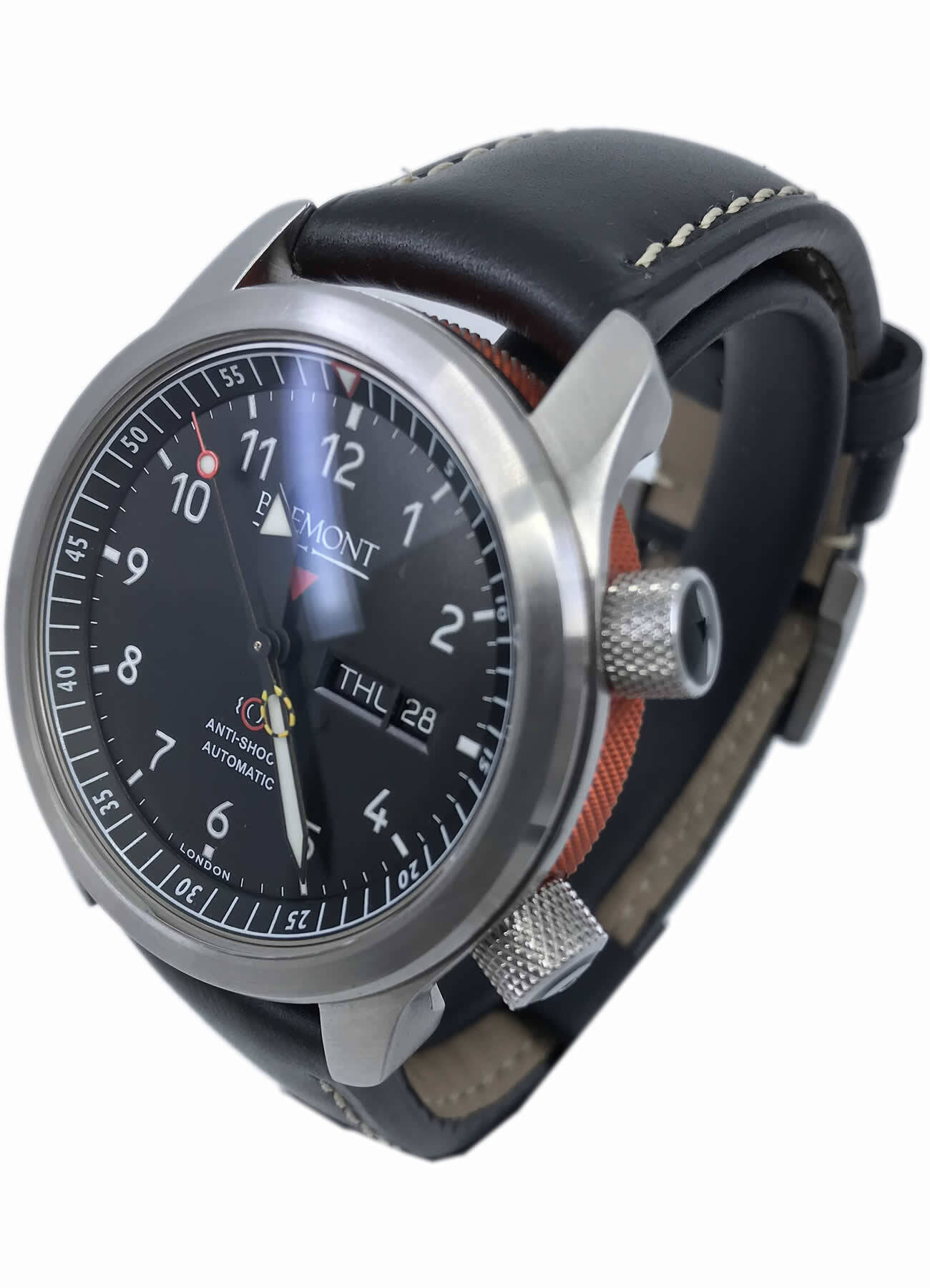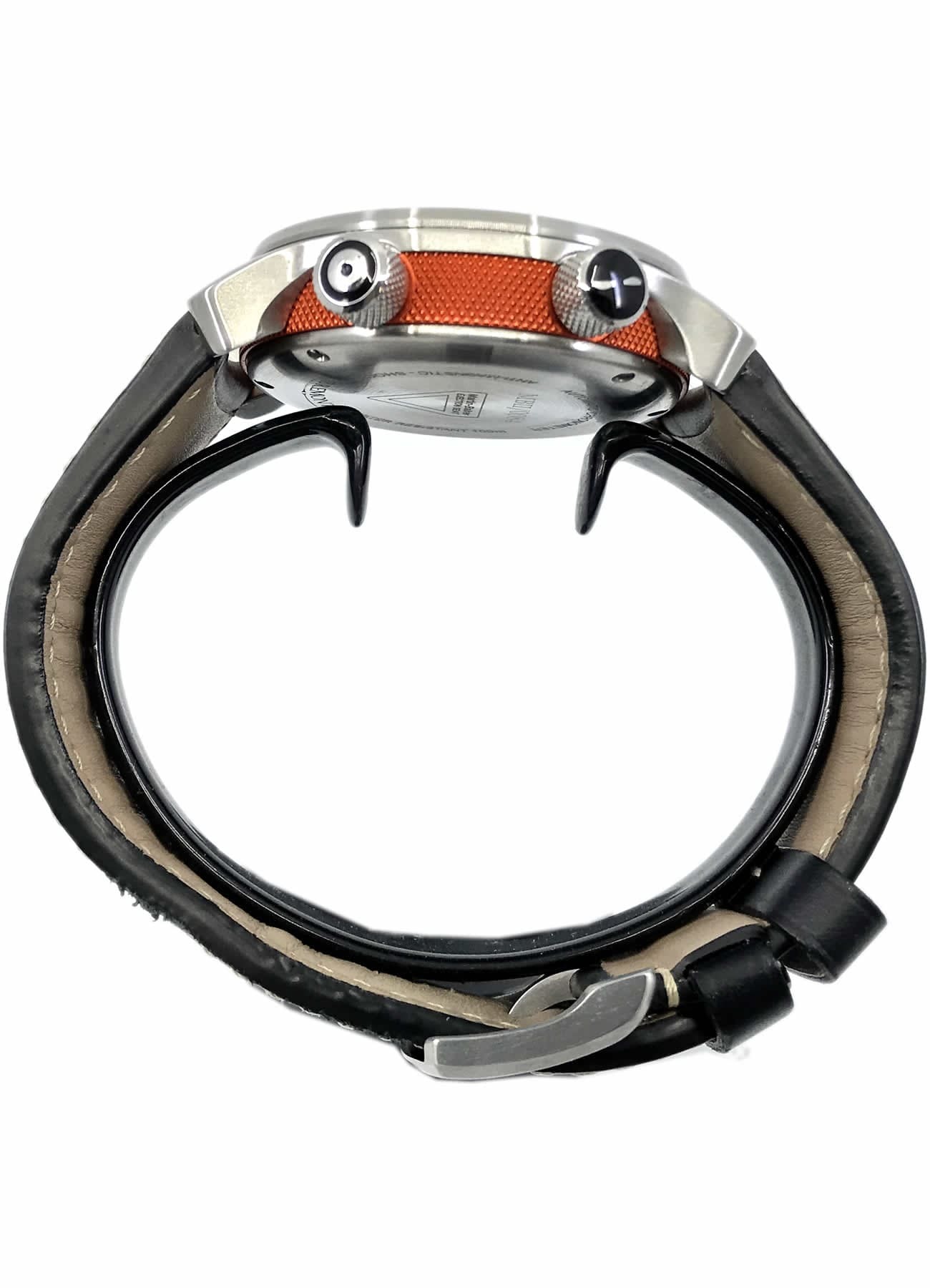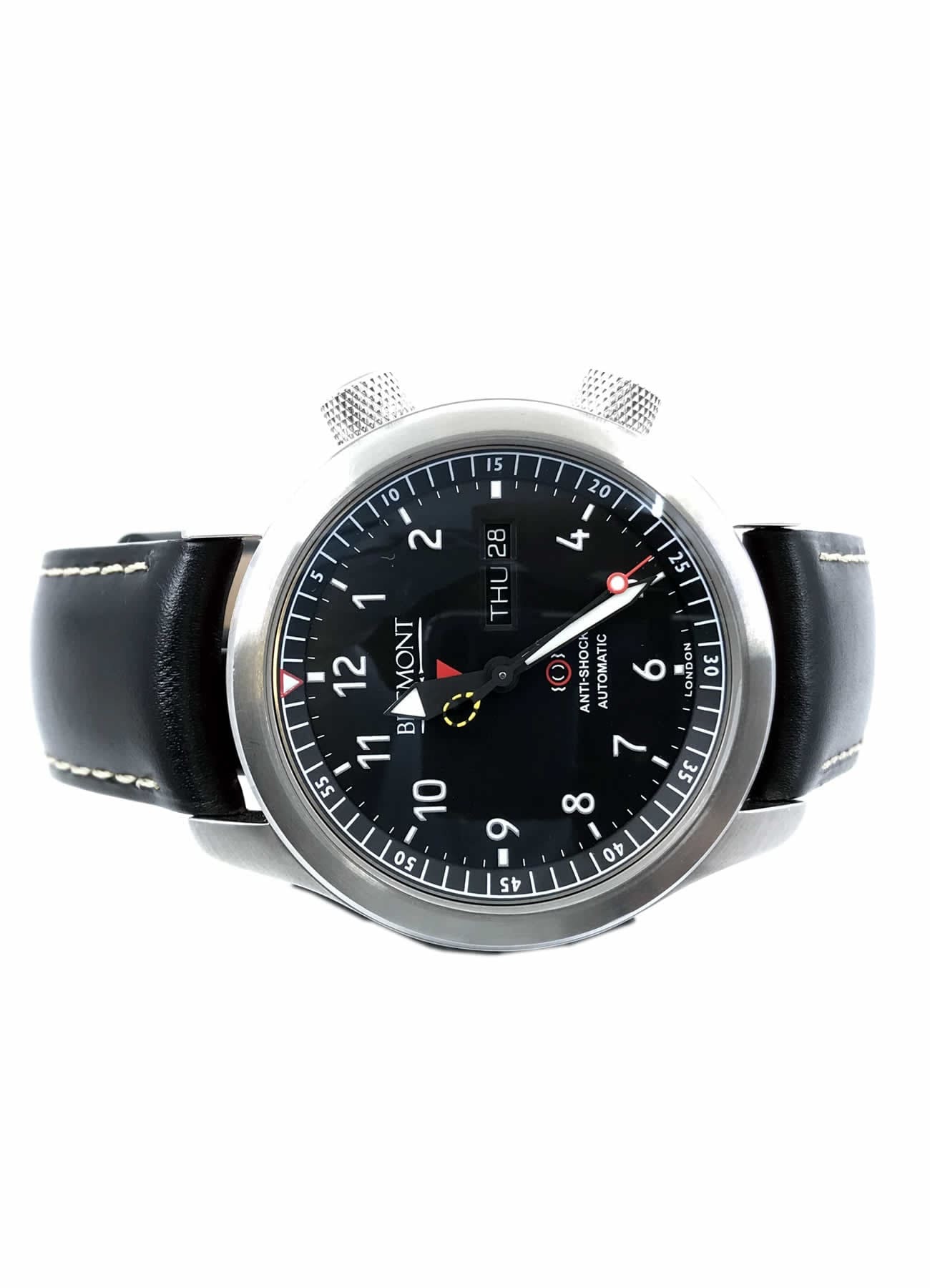 The Bremont MB was designed and built to become the definitive aviation chronometer in the market place and embody all that is meant by 'Made in Britain'. Tested and designed in conjunction with the iconic British aviation company 'Martin-Baker'. There are two models available - the MBI and the MBII. The MBI is only available to those individuals who have ejected using an MB ejection seat and can be identified quickly by its red aluminium barrel. The movement is protected by an anti-magnetic Faraday cage and a specifically designed anti-shock case mount. The MB range has been designed and tested to withstand the MB ejection seat test programme.