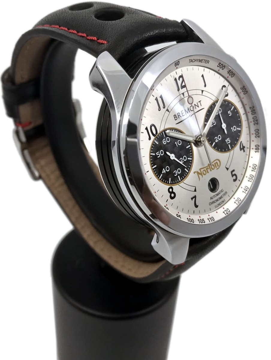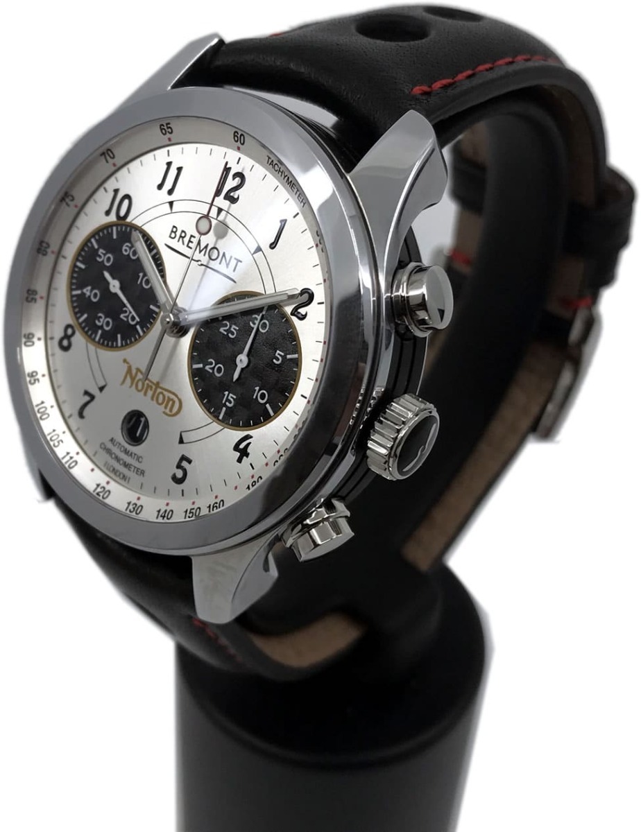 To celebrate the Norton V4RR, Bremont has created a stunning timepiece, limited to 200 pieces that will be available for general sale. It combines numerals similar to the classic Norton typeface with gold chronograph borders, a gold Norton logo, and again housed in a beautifully polished Trip-Tick® three-piece case.