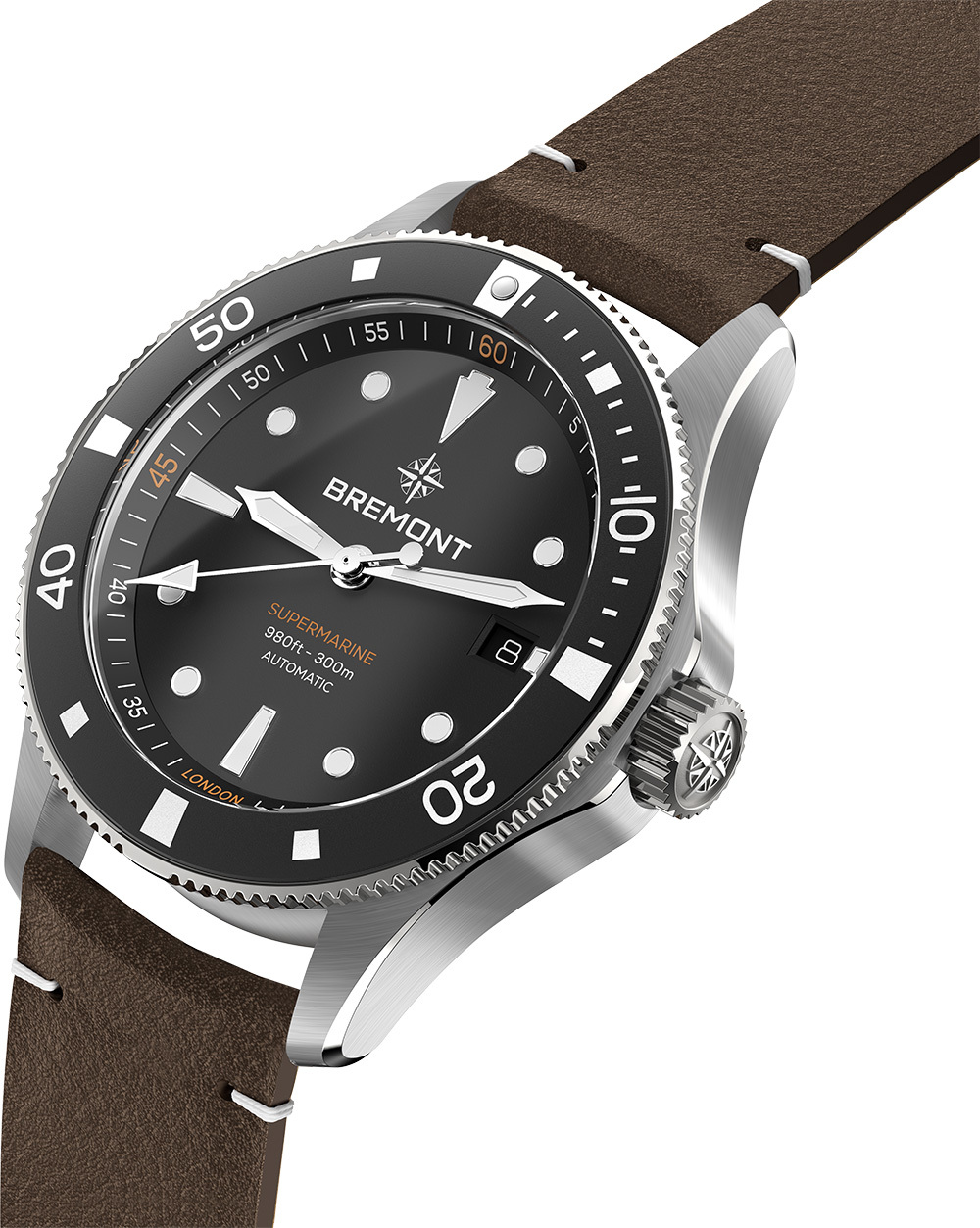 Bremont SM40-DT-SS-BK-L-S Supermarine 300 Date Black Dial on Leather Strap