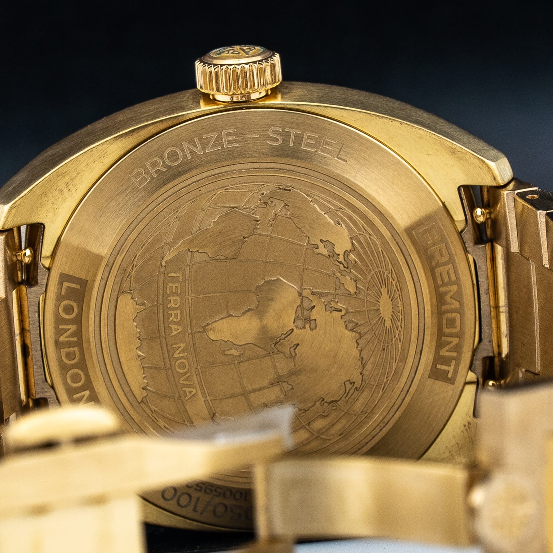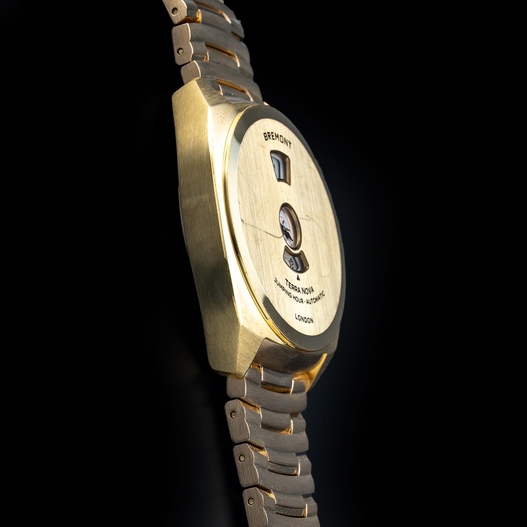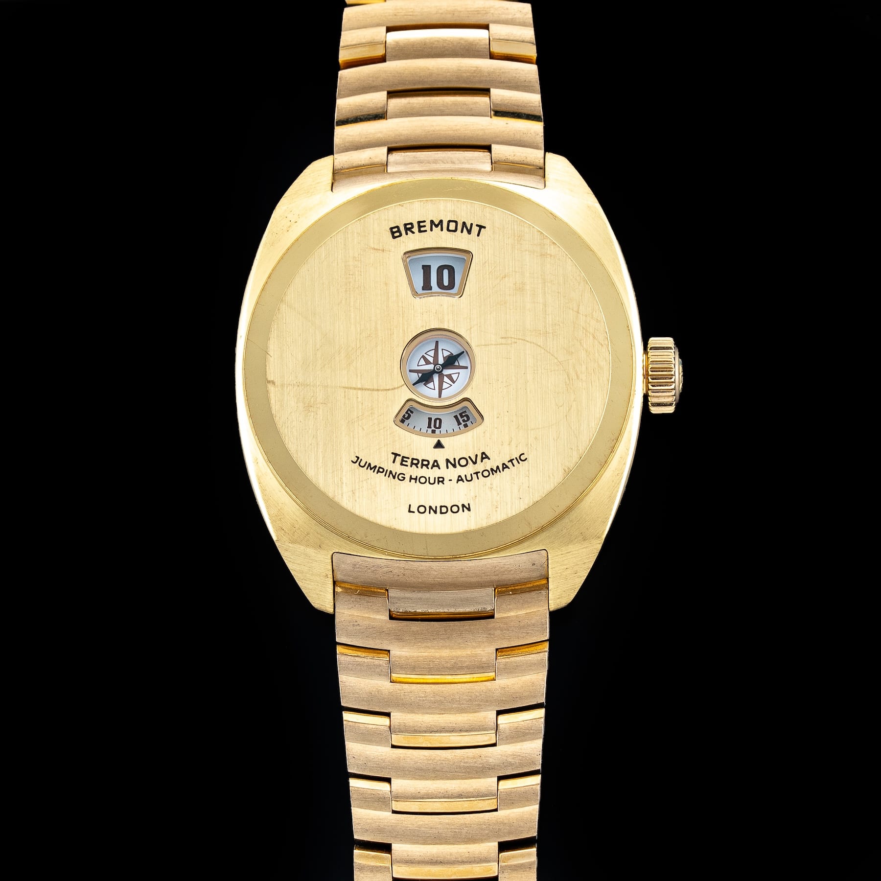This Bremont TN38-JH-BZ-CC-B Terra Nova Jumping Hour Bronze On Bracelet is in GREAT condition. This watch includes its Original Box, Original Papers and Warranty Card Dated 10/24/2025. This watch has been fully authenticated and certified by Exquisite Timepieces. Please note, the photos shown are of the actual watch you will receive.