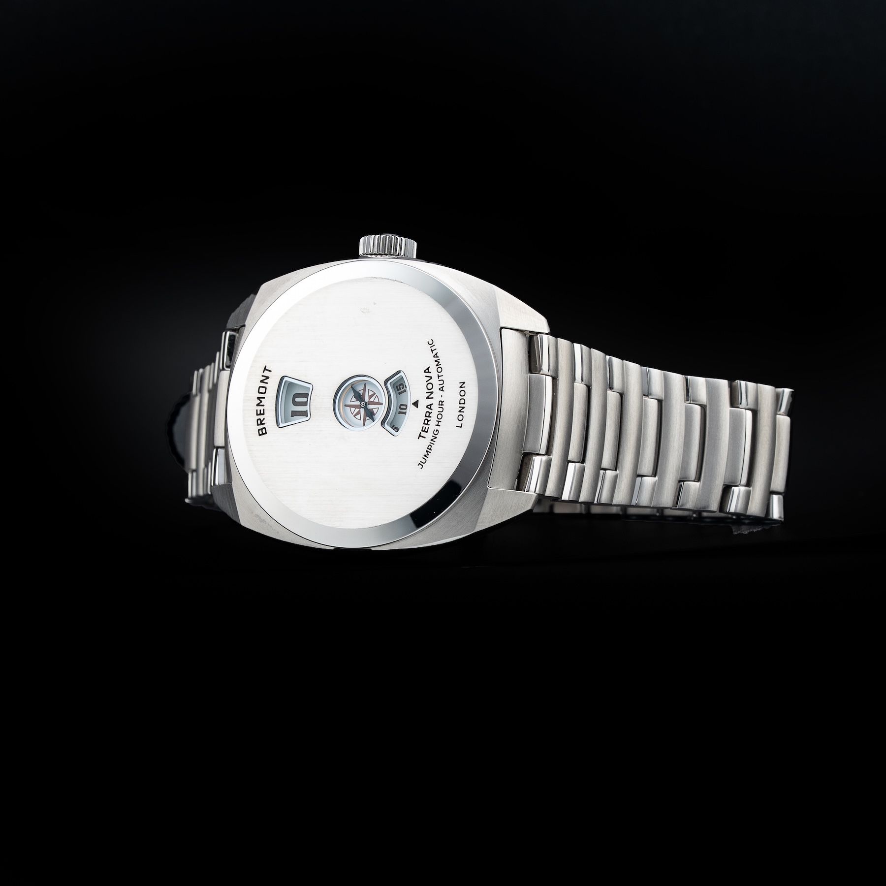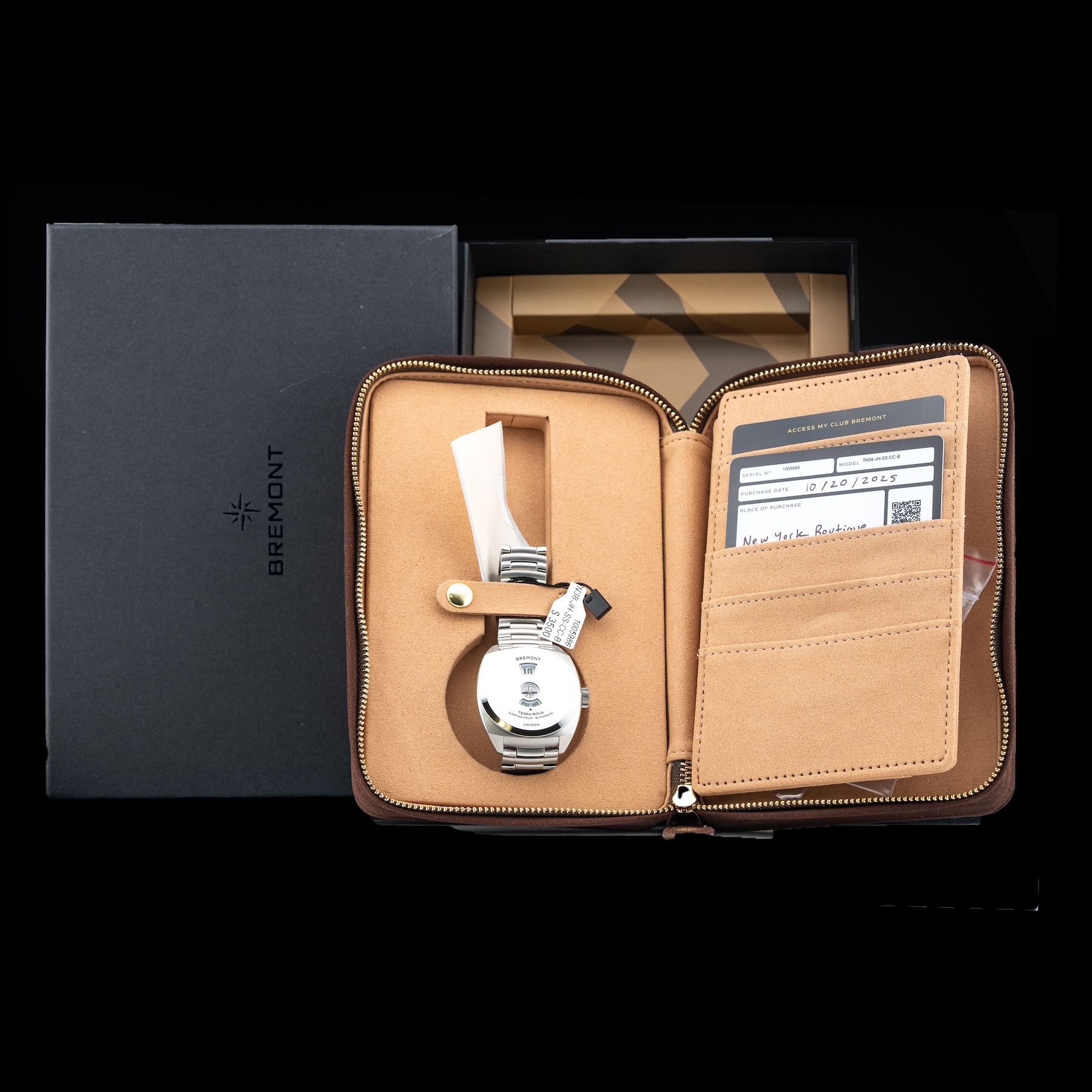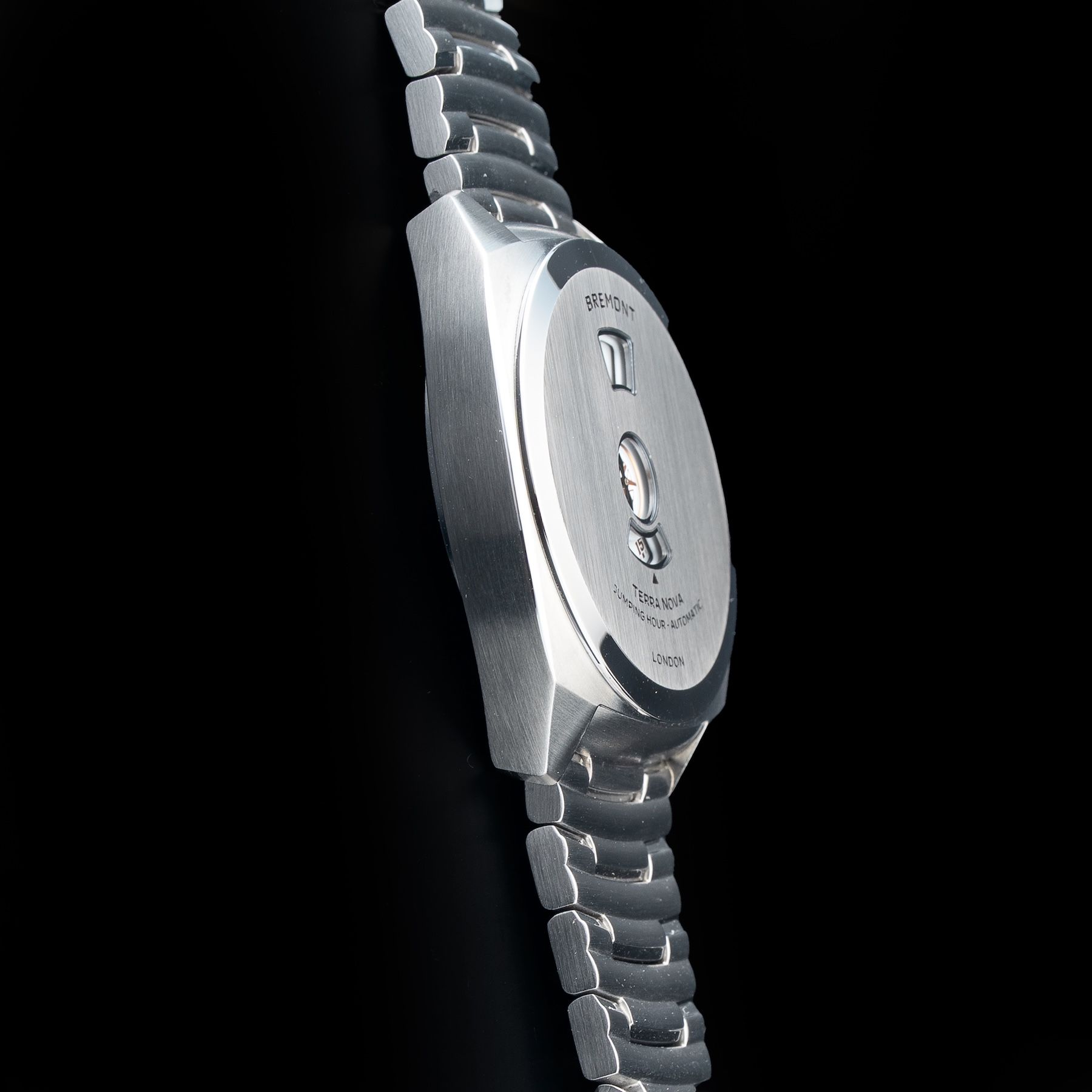 This Bremont TN38-JH-SS-CC-B Terra Nova Jumping Hour On Bracelet is in GREAT condition. This watch includes its Original Box, Original Papers and Warranty Card Dated 10/20/2025. Extra Links and Strap. This watch has been fully authenticated and certified by Exquisite Timepieces. Please note, the photos shown are of the actual watch you will receive.