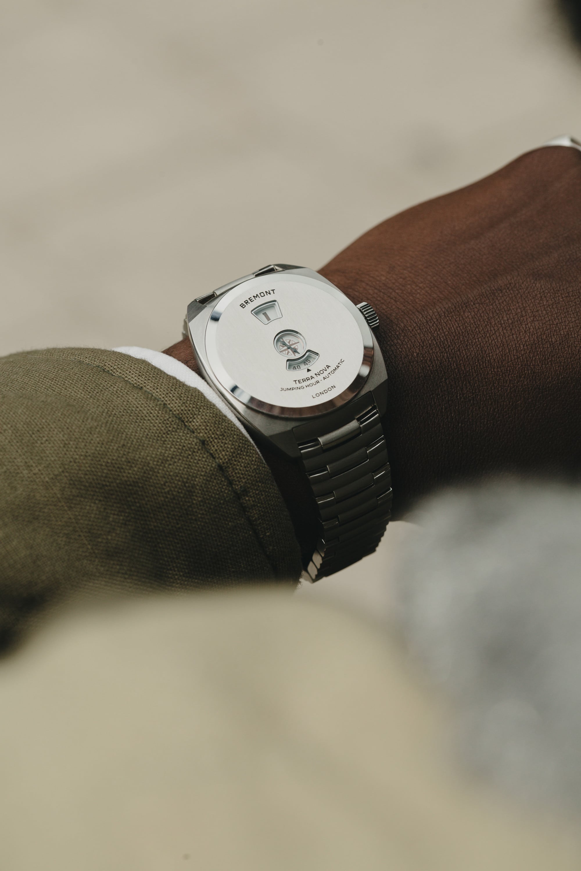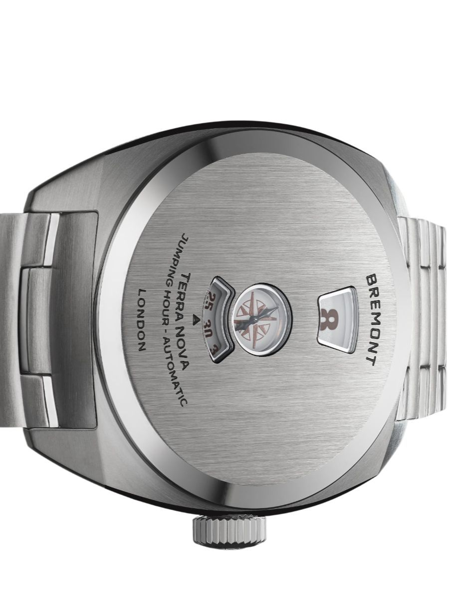 Davide Cerrato, CEO of Bremont, comments: "When we first launched the Terra Nova Jumping Hour in bronze, the response was phenomenal— it sold out very quickly. It confirmed for us that our clients are not only hungry for more intriguing complications, but also for bold design statements.We know this watch has the potential to become a future icon, standing alongside the Altitude MB. In this regard, we're proud to introduce its second iteration crafted in 904L steel and not limited. It's as robust as any Bremont, and makes a bold style statement."