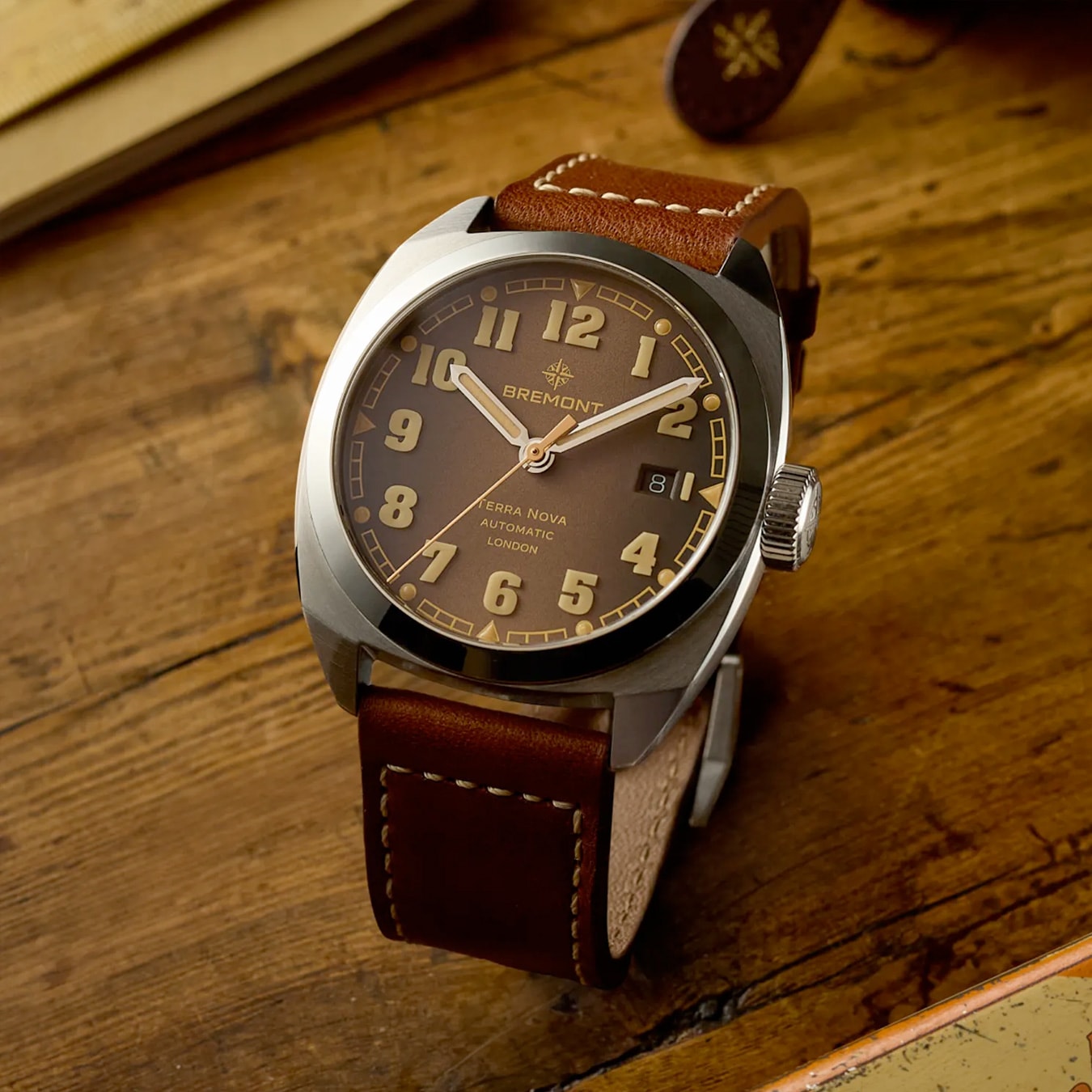 Bremont TN40-DT-SS-BR-L-S Terra Nova Date SS Caramel Dial Leather Strap