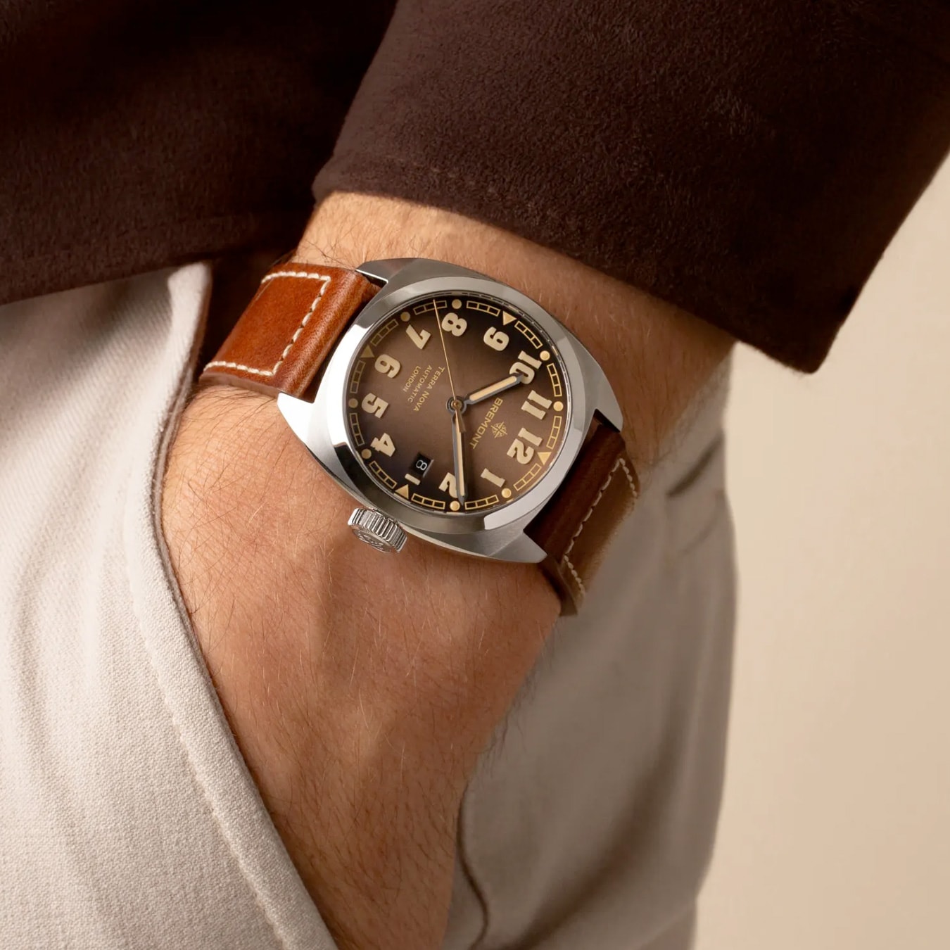 Introducing the Limited Edition Terra Nova 40.5 Date, featuring a striking, vintage-inspired 'Caramel' dial.