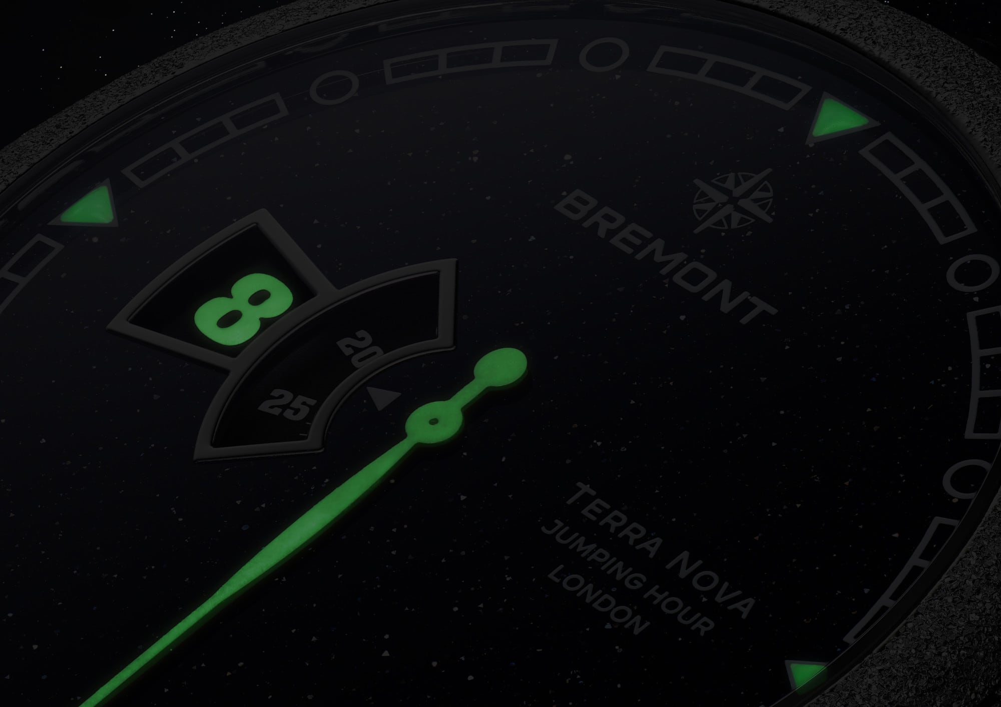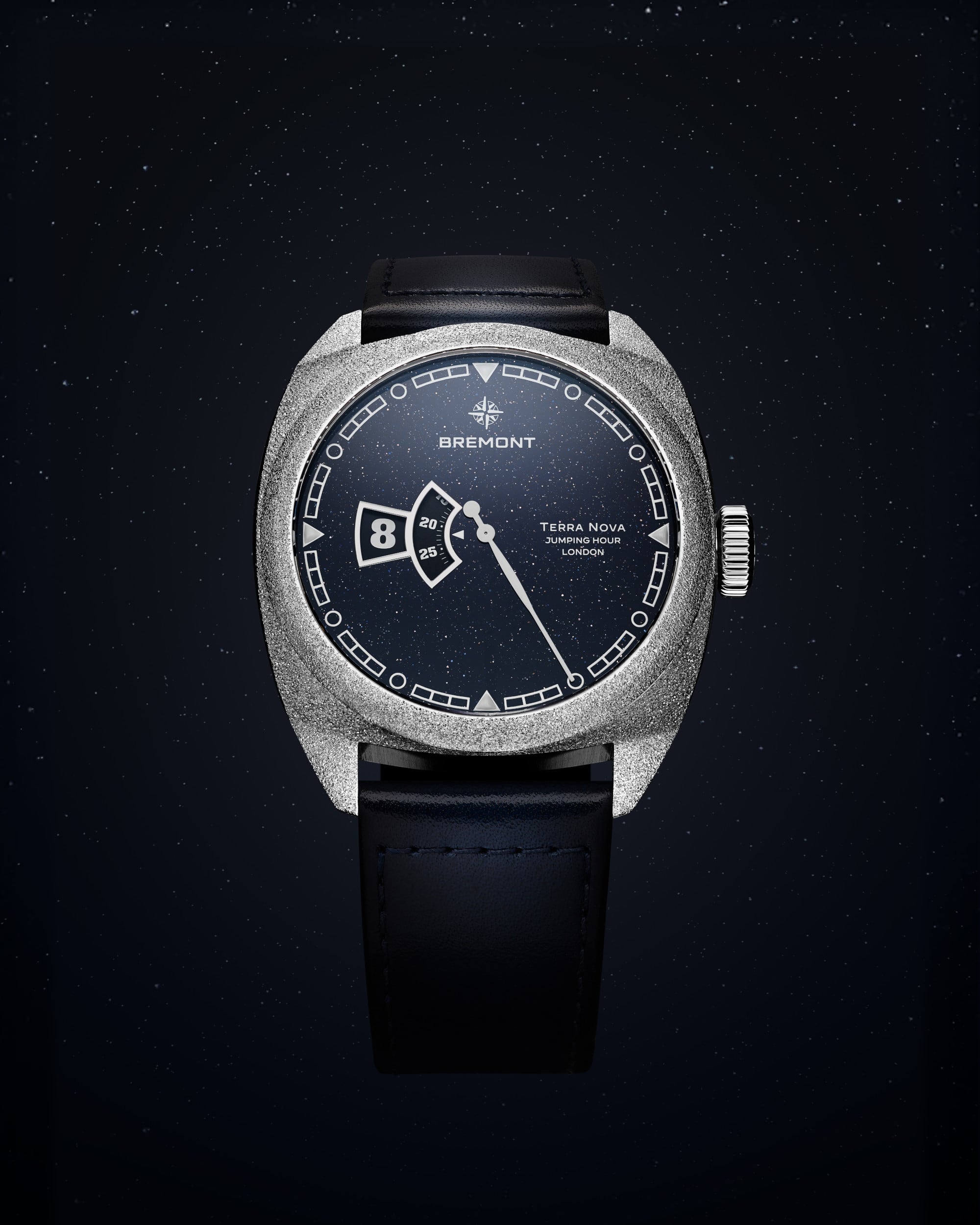 Following the debut of the 904L steel and black gloss dial edition at Watches & Wonders in April 2025, this marks the second model in Bremont’s 40.5mm Jumping Hour range and the first time the brand has introduced Aventurine into the Terra Nova field watch collection. The result is a refined, contemporary timepiece designed to appeal to discerning collectors and enthusiasts.