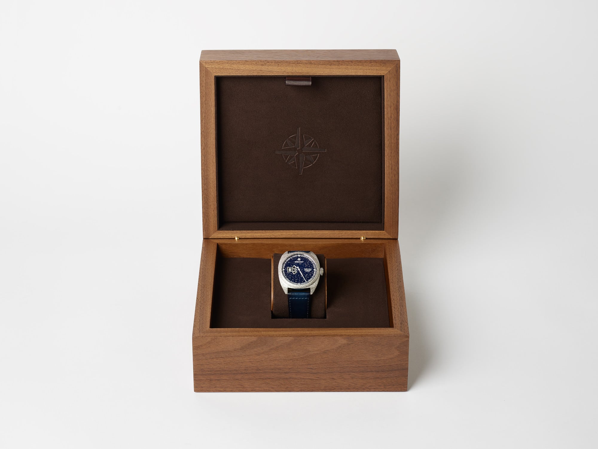 Limited to just 50 pieces worldwide, this new model brings a striking new material to the Terra Nova collection, pairing a deep blue Aventurine dial with a frosted 904L steel case and blue leather strap. Notwithstanding the elegance of the model, this new introduction continues to embody the durable and high-performance standards expected from the robust Terra Nova field watch line.