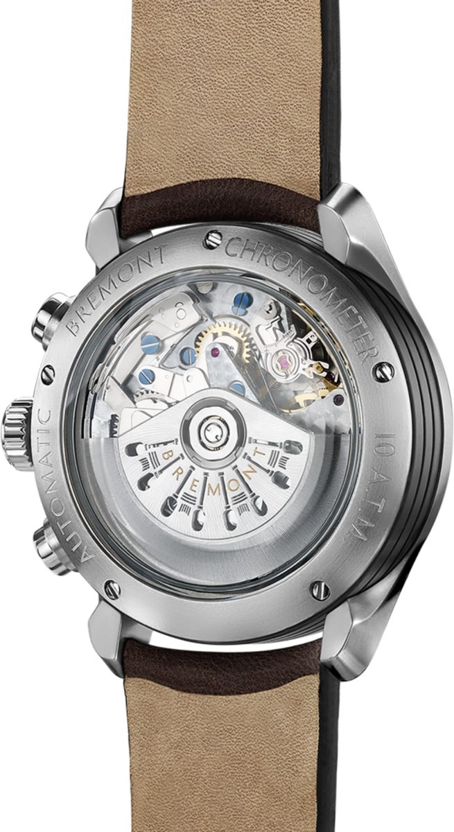 Hardened stainless steel Bremont Trip-Tick® construction with scratch resistant DLC treated case barrel.