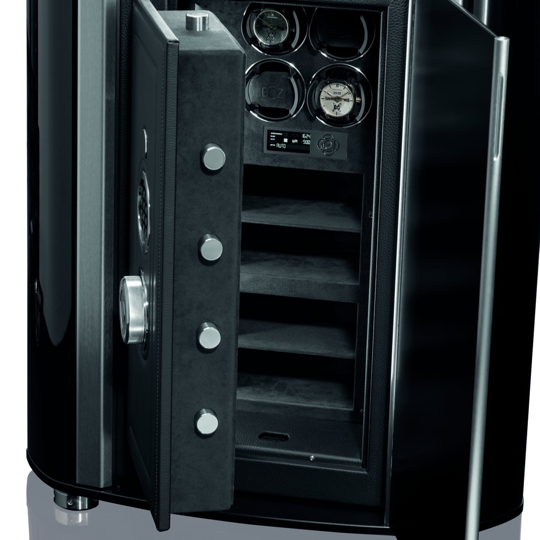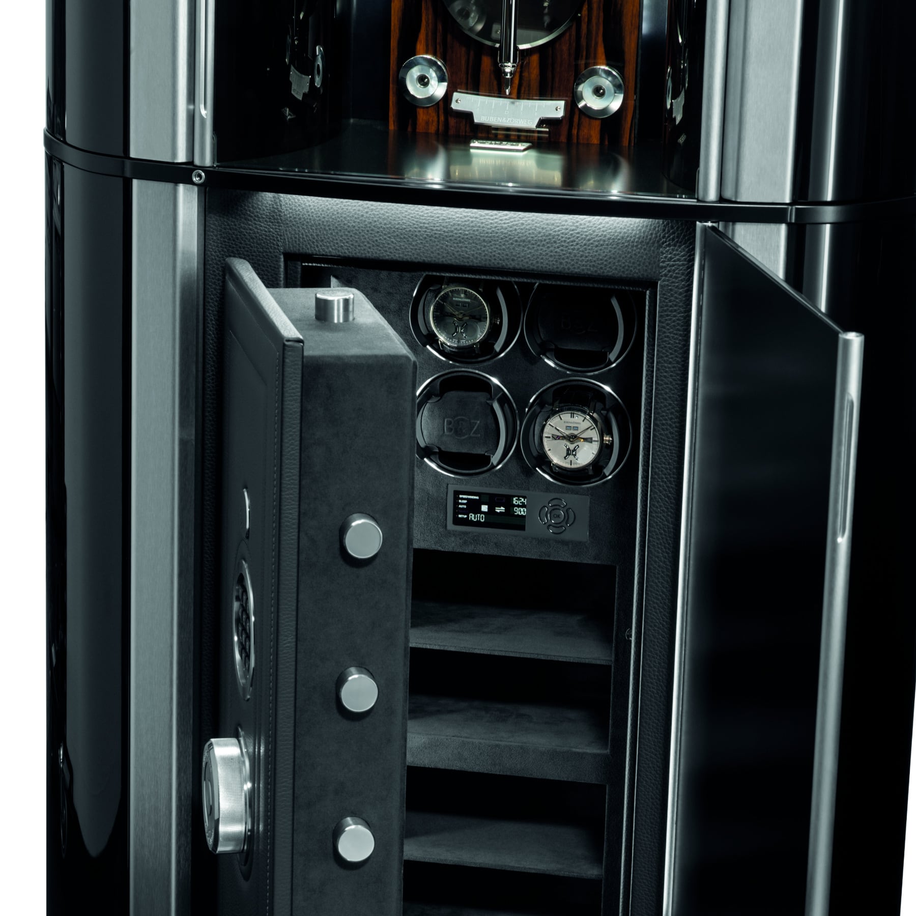 Inside the GRANDE INFINITY, innovation continues with the Alpha 01 pendulum movement, a testament to the precision engineering and aesthetic grace of traditional clockwork. Adding to its allure, the innovative "Swing & Hide" door system allows up to 20 watches to be spectacularly displayed or discreetly protected, ensuring both security and accessibility.