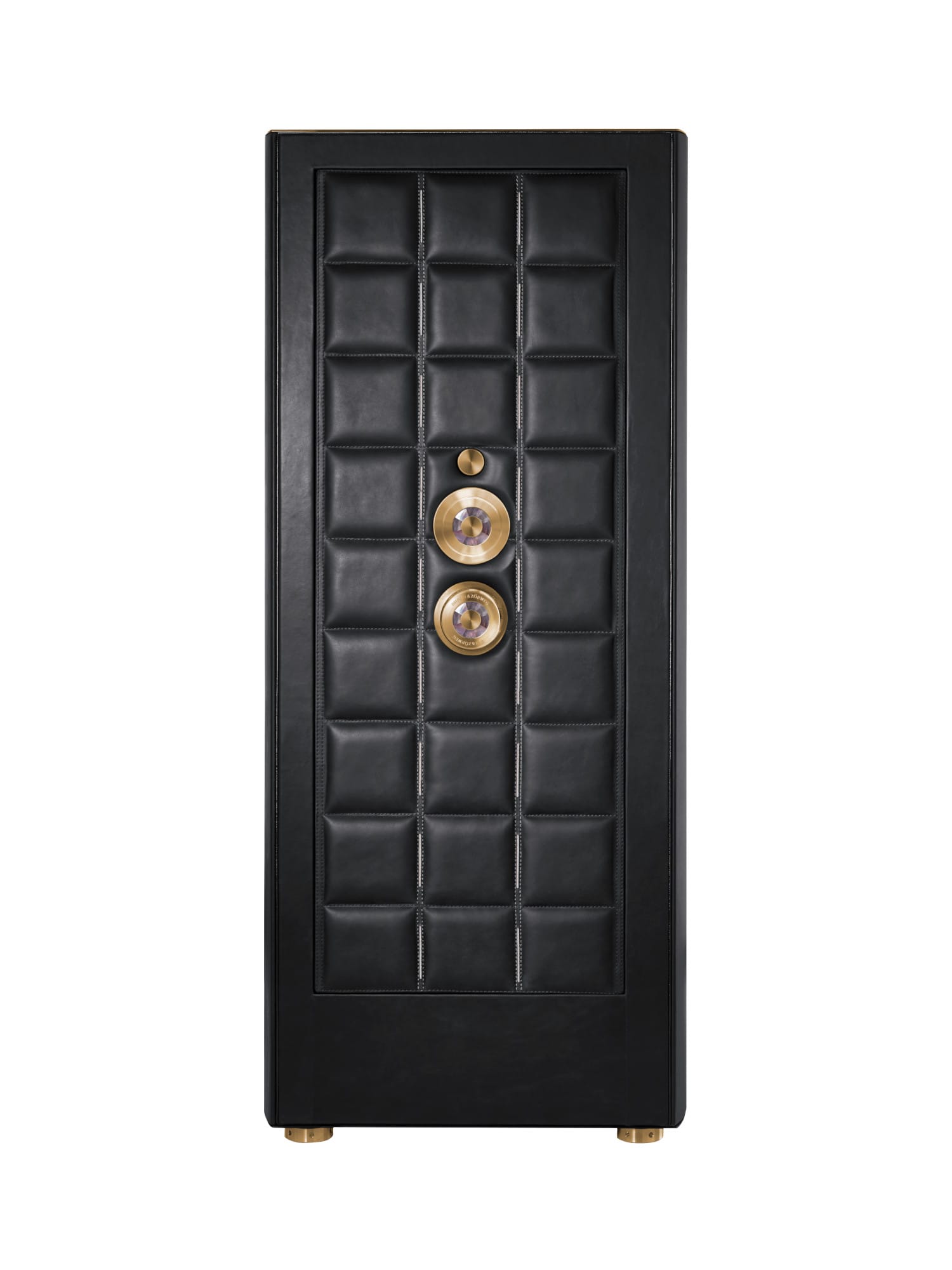 Between 12 and 45 ORION Squares cover the safe door, each one 15cm x 15cm and upholstered to a height of 2cm.
