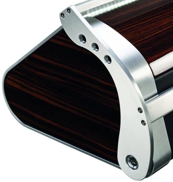 Stainless steel accents, a huge glass frame, finest leather and a roomy design crafted from exclusive materials create a mesmerising effect.