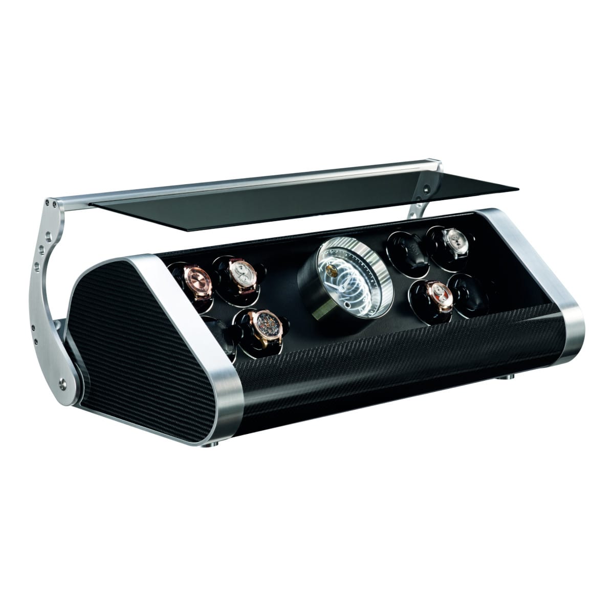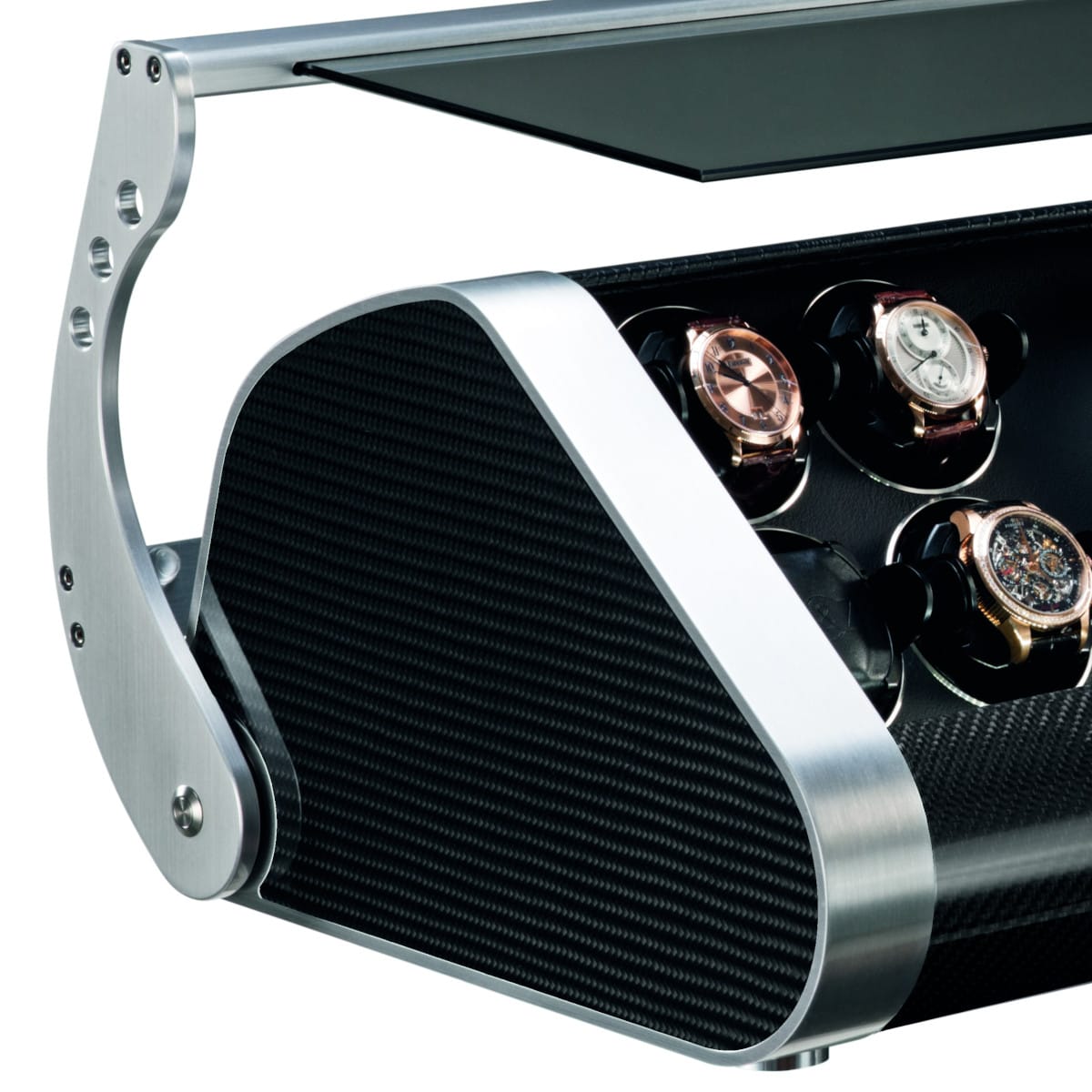 The REVOLUTION is driven by an innovative engineering and design philosophy. This luxury watch winder presents a radically different backdrop, moving away from the classic cubic or rectangular housing to a never-before-seen design that enhances the display and functionality of your timepieces.