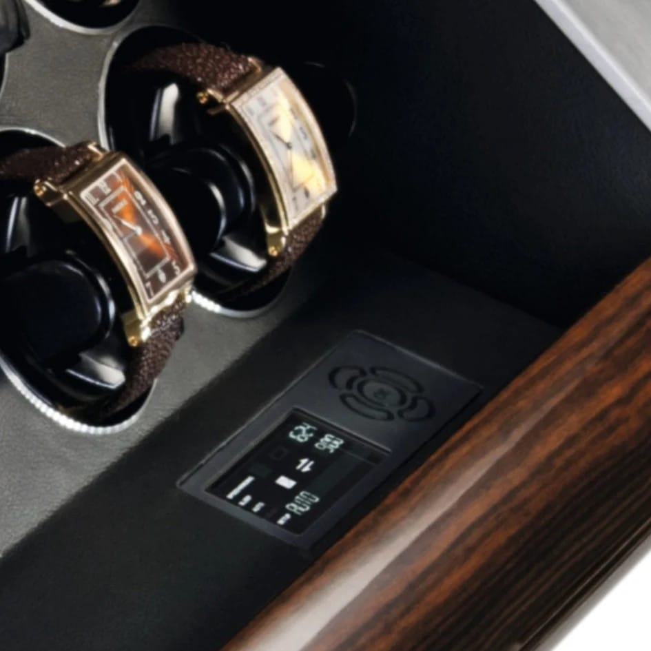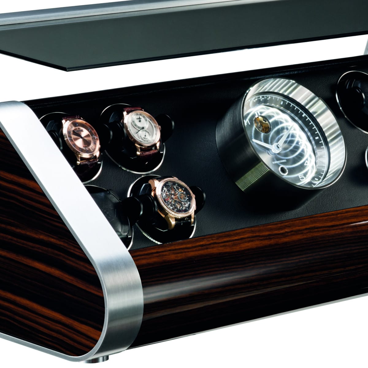 The REVOLUTION is driven by an innovative engineering and design philosophy. This luxury watch winder presents a radically different backdrop, moving away from the classic cubic or rectangular housing to a never-before-seen design that enhances the display and functionality of your timepieces.