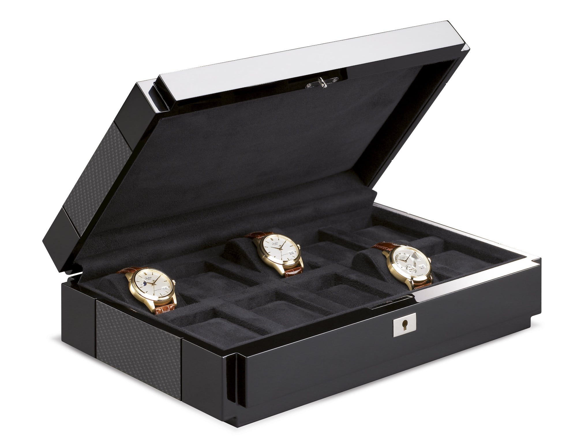 With fittings crafted in stainless steel, black high-gloss lacquer combined with selected woods, or carbon fibre, the VANTAGE collection offers a discreet and elegant way to maintain horological treasures along with precious cufflinks, jewellery and pen collections.