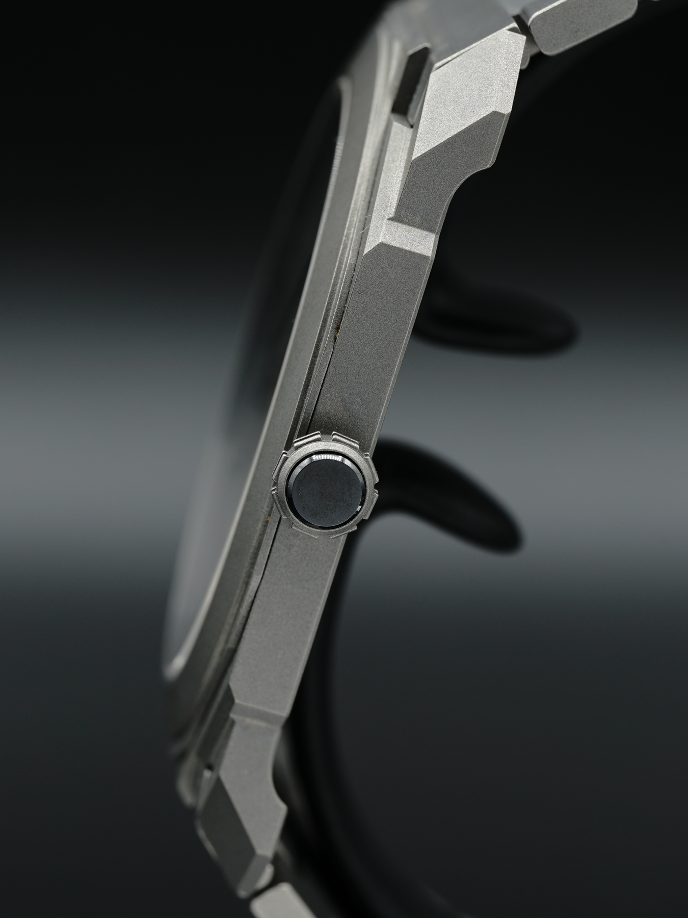 - This timepiece features a 40mm titanium case paired with a high quality titanium bracelet. It showcases a distinctive grey dial and is powered by a precise manual winding movement. The watch is designed with a water resistance of up to 30m.