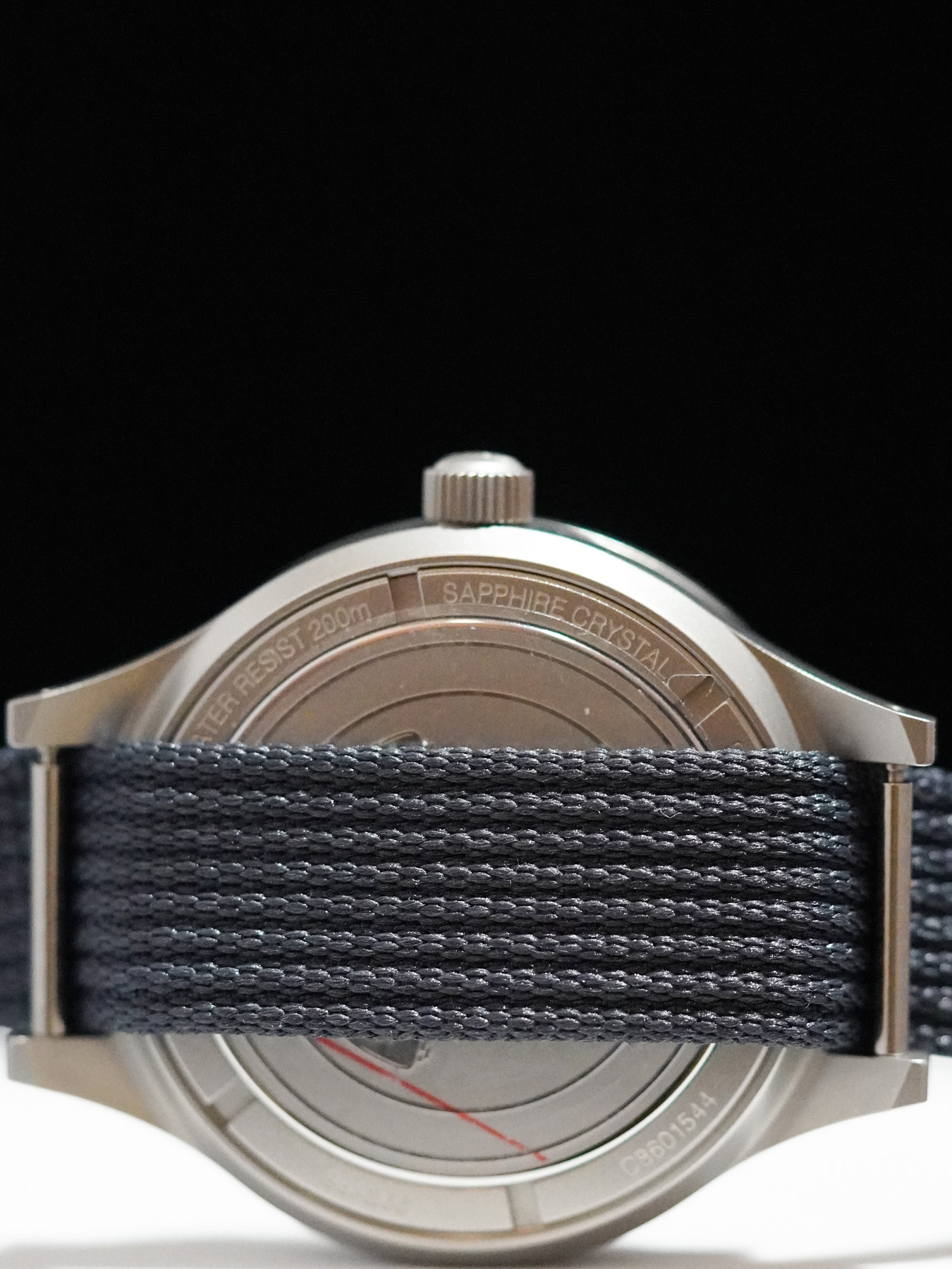 This watch features a 41mm stainless steel case on NYLON strap. This watch also sports a black dial. Powered by an automatic movement. Water resistance up to 200 meters.