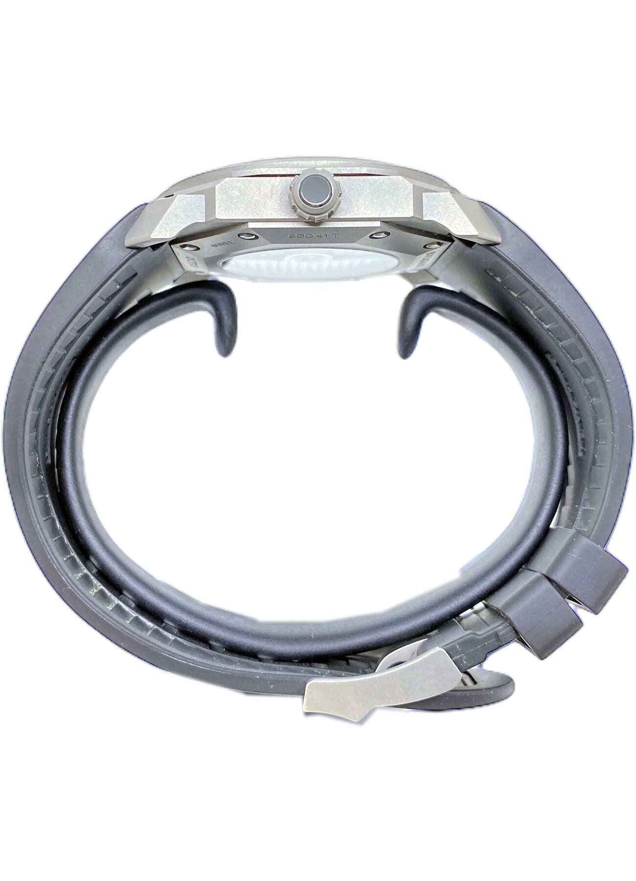- This timepiece features a 41mm titanium case paired with a high quality rubber strap. It showcases a distinctive grey dial and is powered by a precise automatic winding movement. The watch is designed with a water resistance of up to 100m.