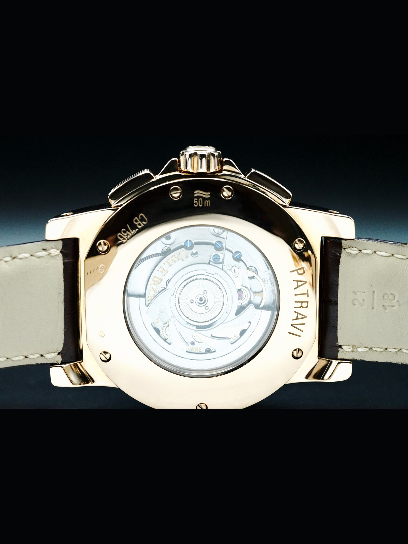 This watch features a 42mm 18k rose gold case on leather strap. This watch also sports a brown dial. Powered by a CFB 1957.1 caliber automatic movement movement. Water resistance up to 50 meters.