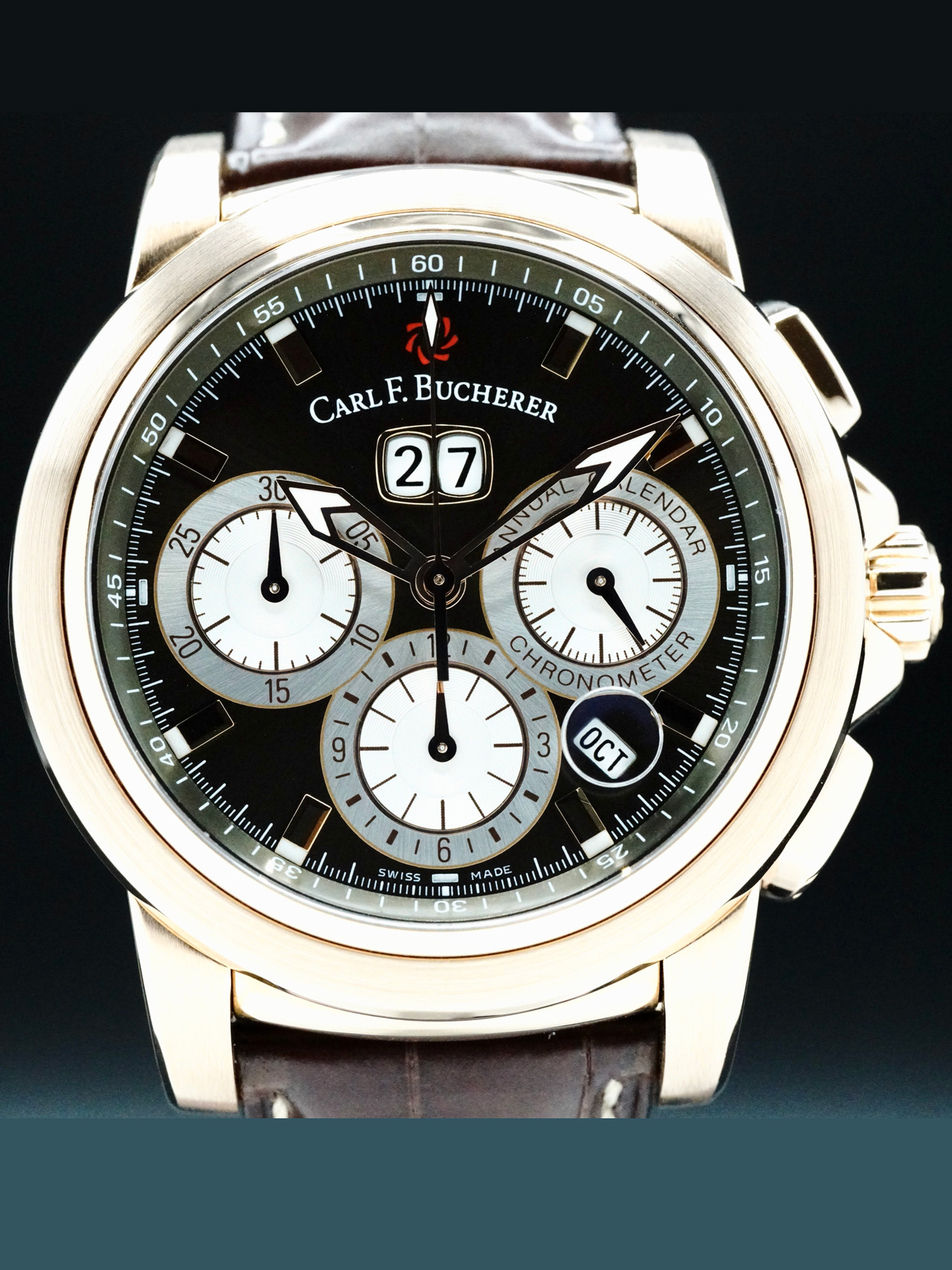 This Carl F. Bucherer 00.10619.03.93.01 is in GREAT condition. This watch includes its Original Box, Original Papers and Warranty Card Not Dated. This watch has been fully authenticated and certified by Exquisite Timepieces.