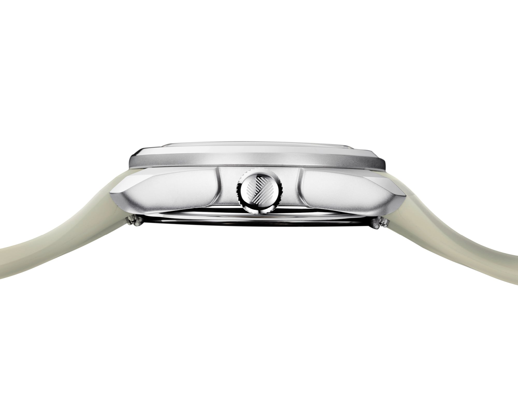 A first glance reveals a timepiece that is sleek and logical on the outside. The stainless-steel case of the Belvedere Bordeaux is also subtly animated by the interplay of polished and satin-finished surfaces. The screw-down crown allows water resistance up to one hundred meters.