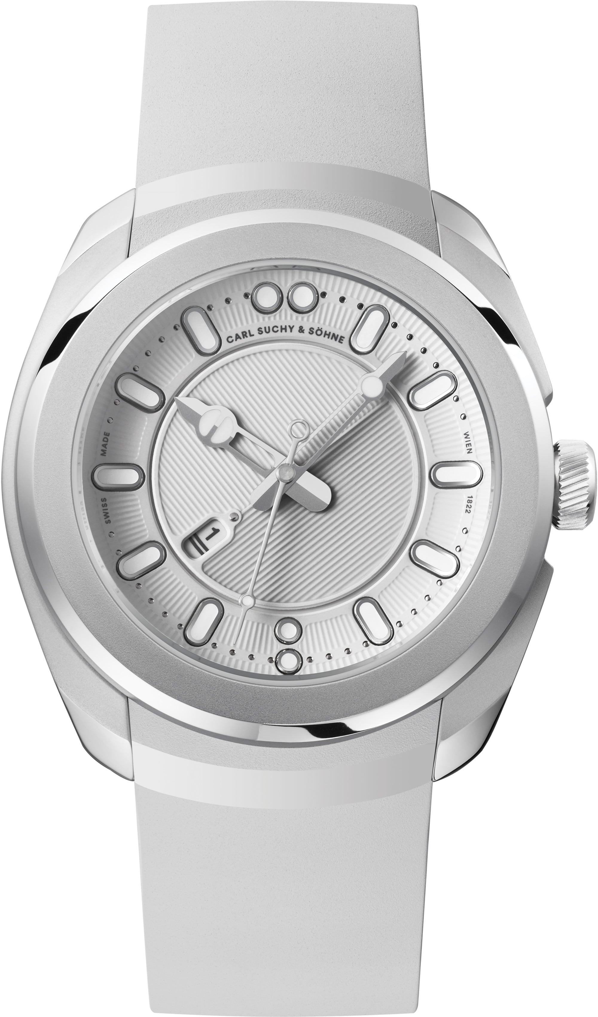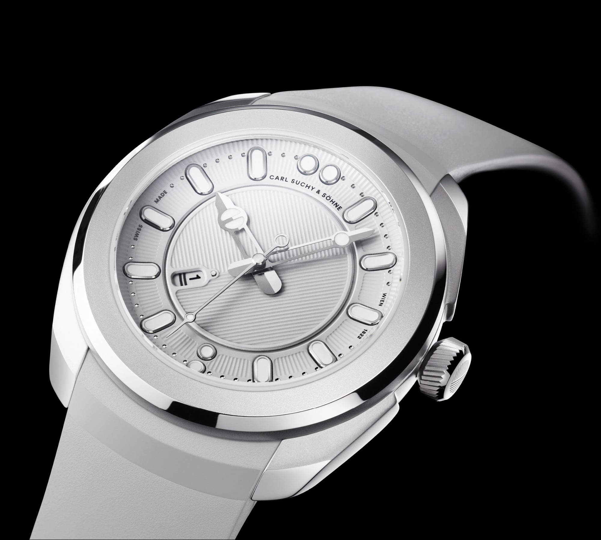 With Belvedere Day, there are no limits to your actions. Adorned with an elegant and timeless white dial and rubber strap, the light version of the sporty wristwatch invites you to face the day with a light and easy attitude. Meet the perfect daily companion, from a morning dip in the blue Danube to a Viennese ball dance!