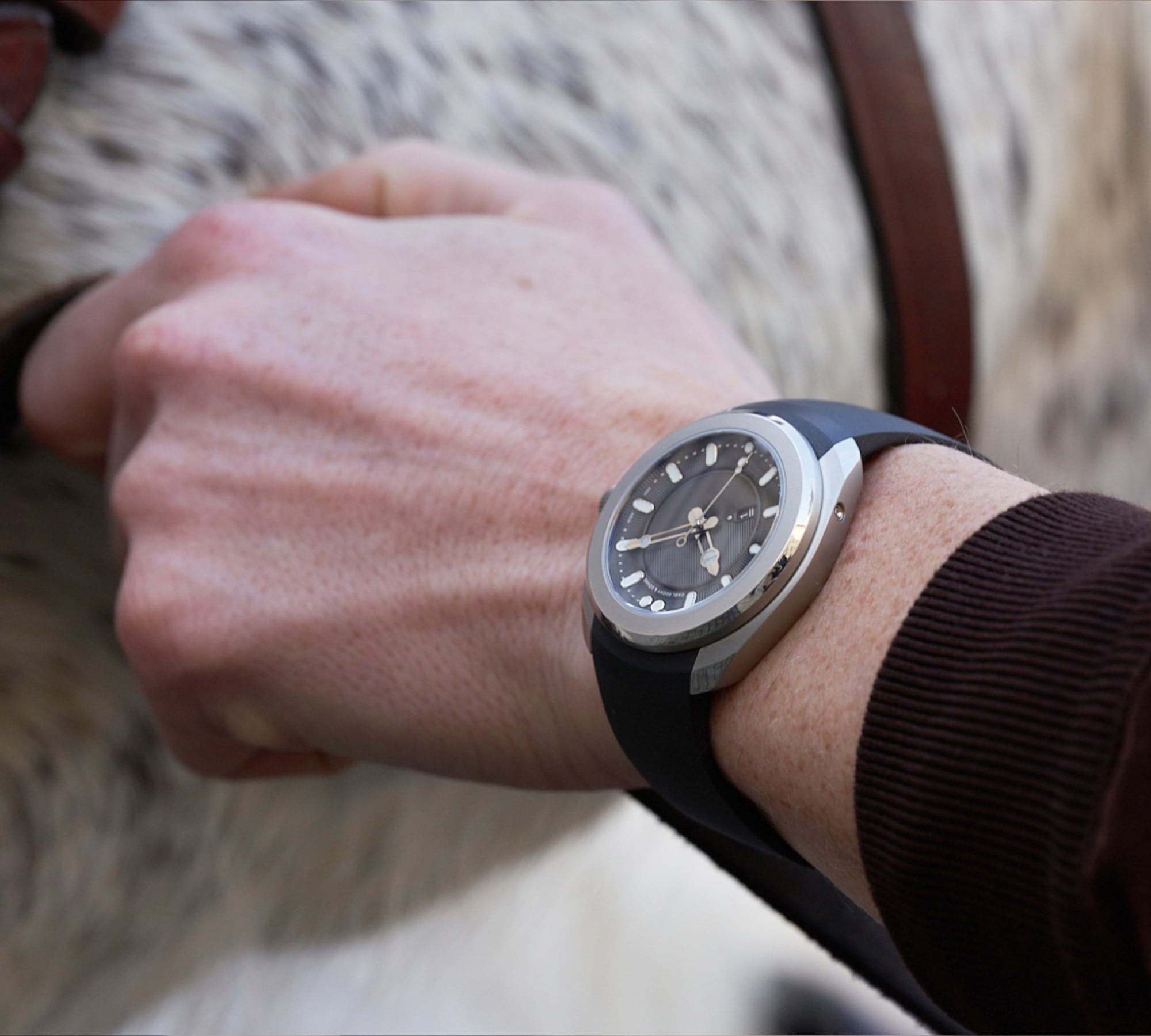 From sports to dinner – the integrated high-quality rubber strap has an elegantly textured inner surface for optimum wearing comfort.