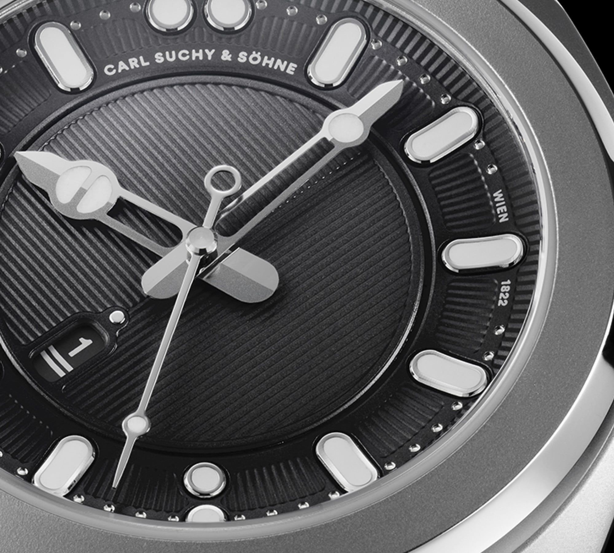 The special Suchy “Jumping Date” – a unique date display window – changes position each day, transforming the look of the watch every twenty-four hours. The skeletonized hands and indexes light up thanks to the application of SuperLumiNova, ensuring high legibility even at night.
