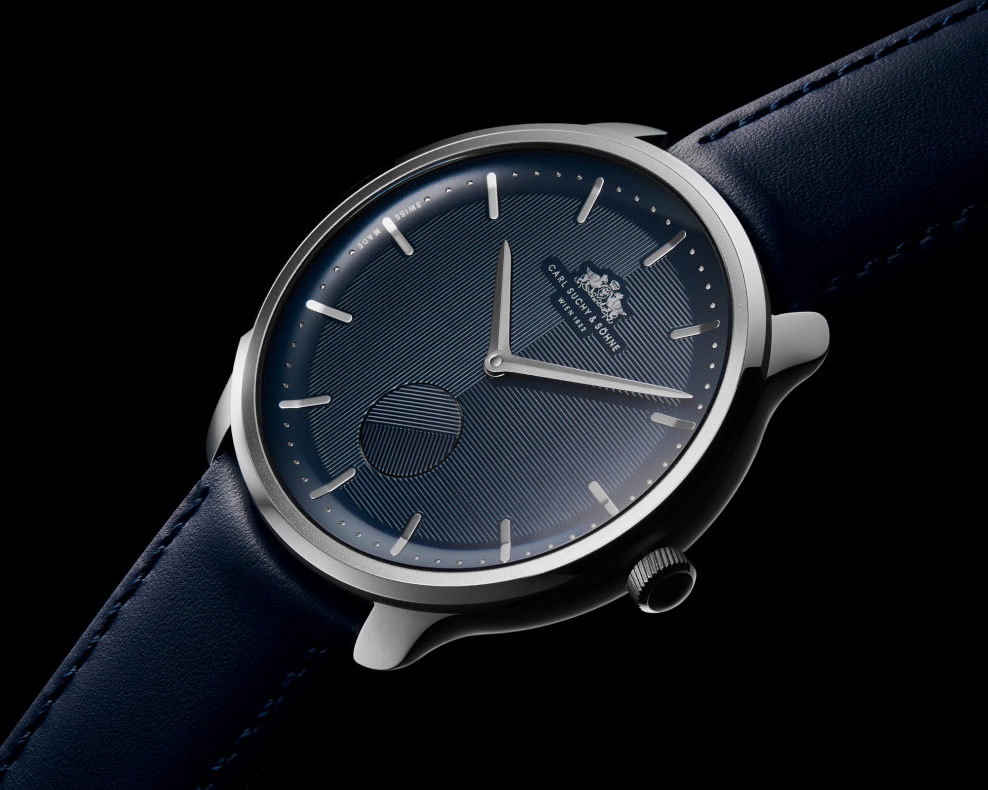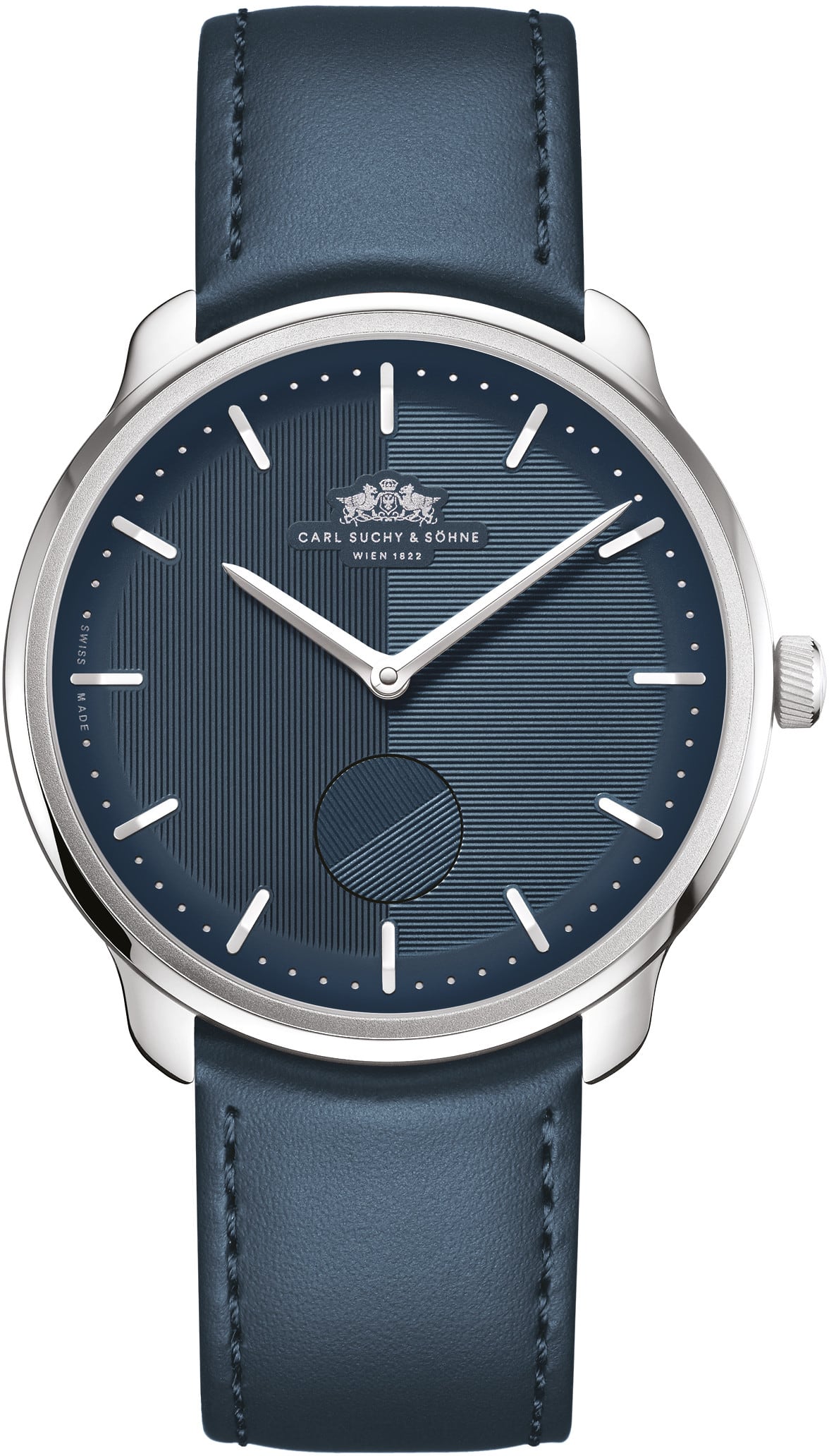 Blue like the Viennese Danube – the Waltz N°1 Blue Danube is the unique blue steel watch by Carl Suchy & Söhne. The mechanic watch with a longstanding Austrian legacy is handcrafted in Switzerland in strictly limited production series. The high-quality dress watch is characterized by clear lines and minimalist design, inspired by Viennese Modernism.