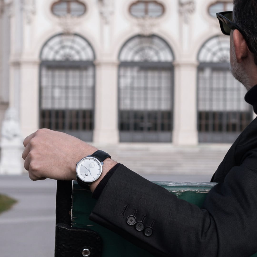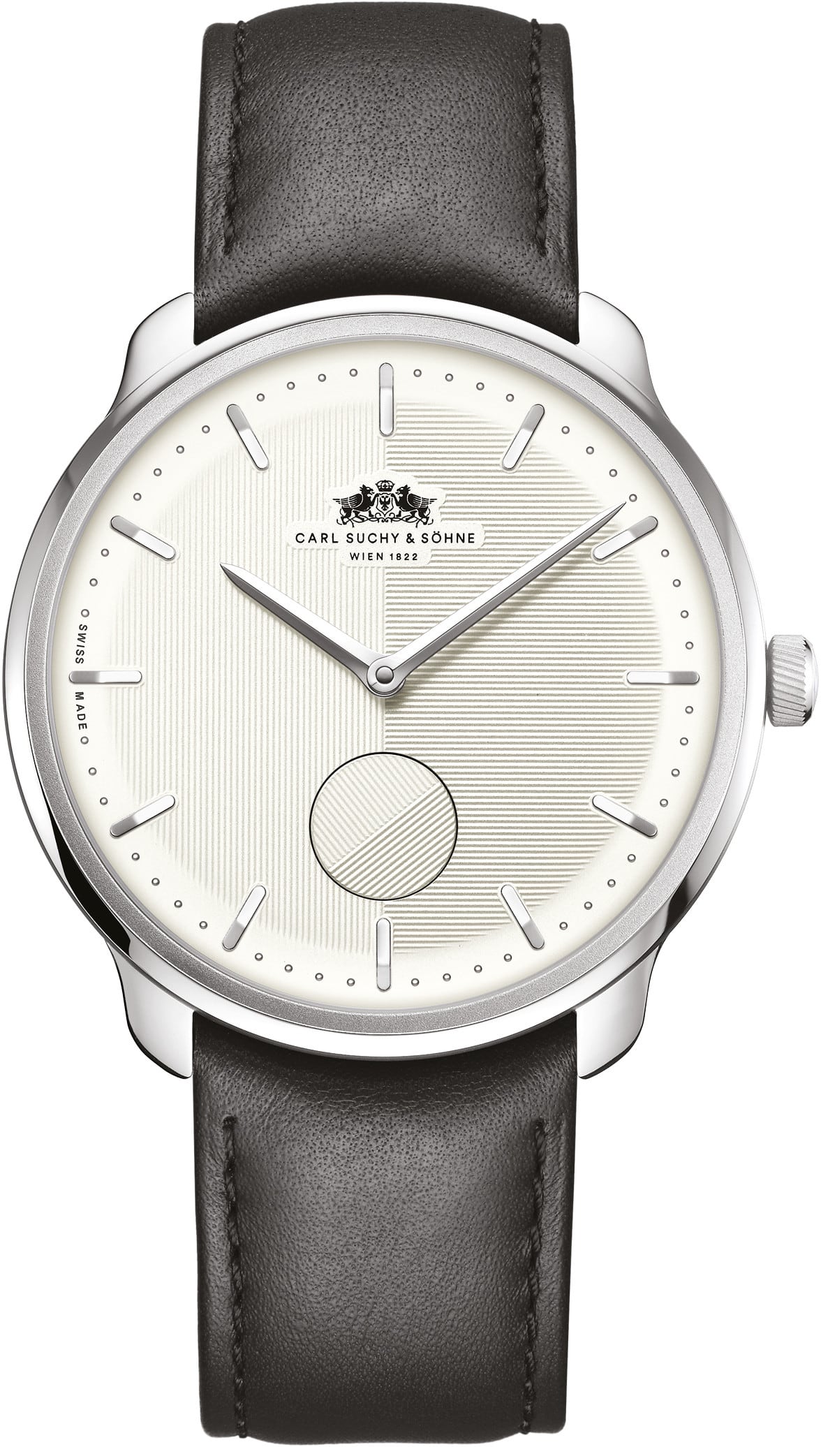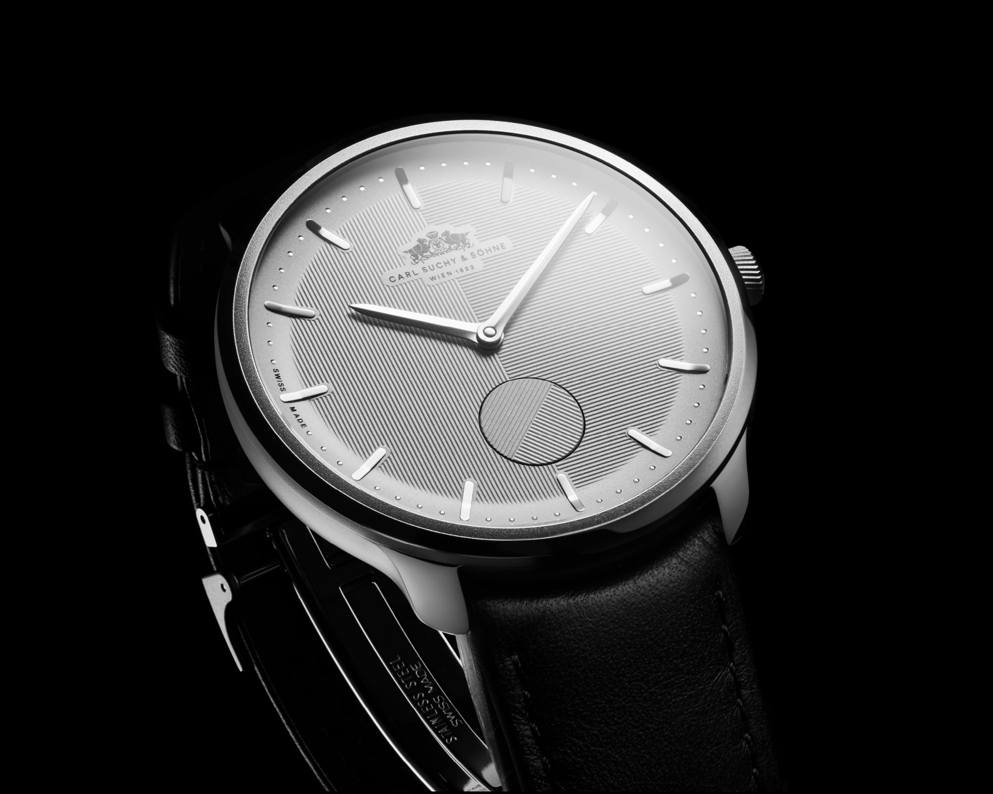 The Waltz N°1 is the first model of the Viennese watch brand Carl Suchy & Söhne. The high-quality wristwatch is handcrafted in Switzerland, available in strictly limited and numbered series. The design of the Waltz N°1 is based on the minimalistic aesthetics of Viennese Modernism.