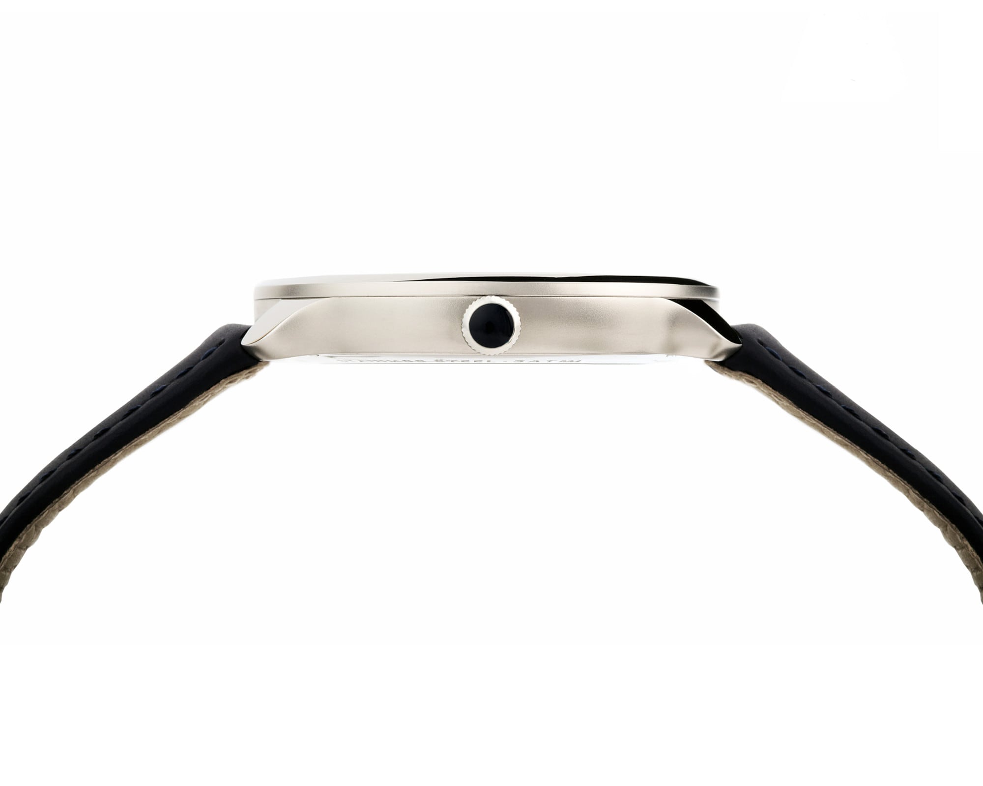The Waltz N°1’s 41.5mm stainless steel case smartly plays with the opposing brushed and polished surfaces. With a height of just 9,3mm, the case is lightweight and lies smoothly on the wrist.