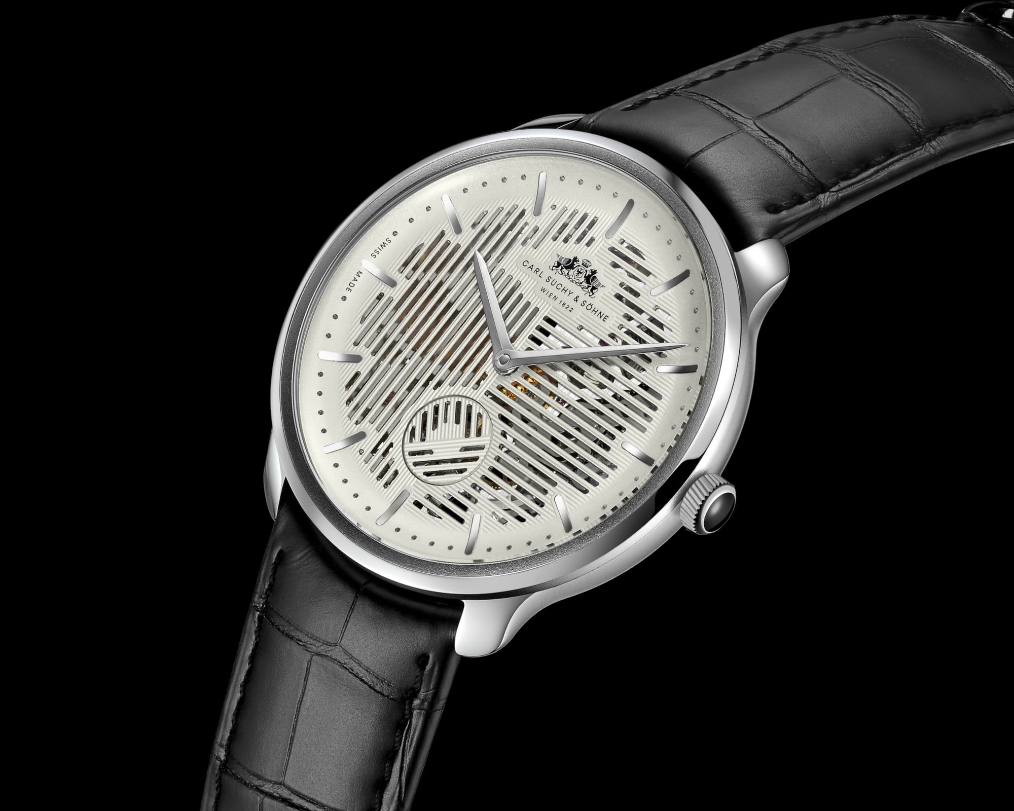Hours, Minutes Iconic Carl Suchy & Söhne “Waltzing Disc” at 6 o’clock