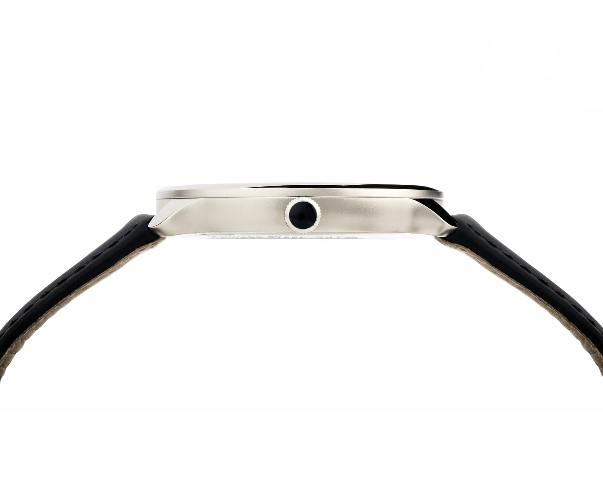 The strap of the automatic skeleton watch is made of high-quality blue alligator leather with blue stitching. The pattern on the inside of the bracelet was inspired by the minimalist aesthetics of Adolf Loos and was designed especially for Carl Suchy & Söhne. A stainless steel safety buckle, adorned by Carl Suchy & Söhne’s historic double-griffon logo, offers maximum comfort.