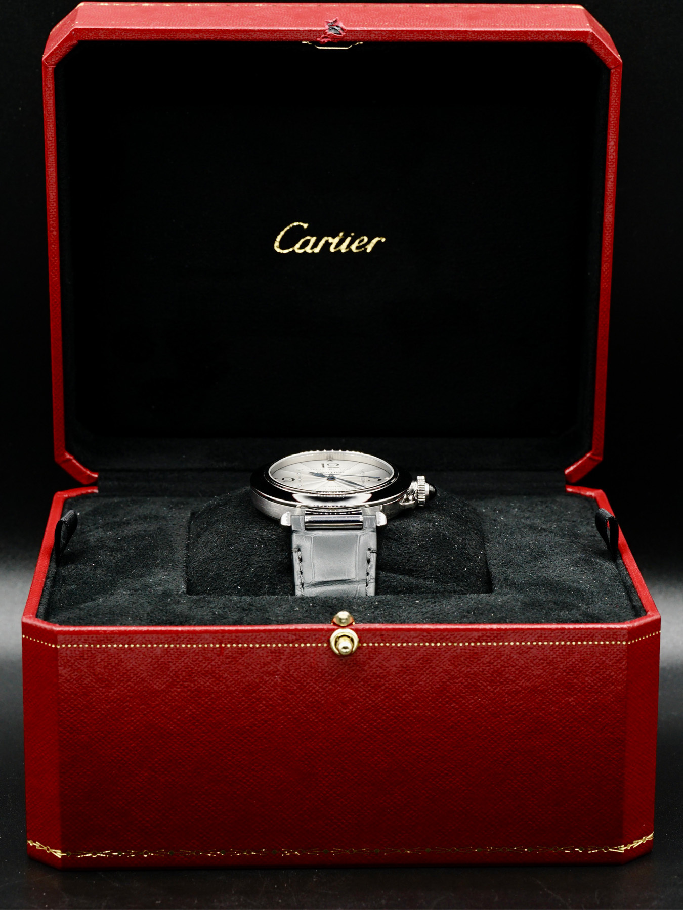 This Cartier Pasha de Cartier WSPA0009 is in EXCELLENT condition. This watch includes its original box, instruction manual, and Cartier care booklet. Extra stainless steel bracelet with extra bracelet links.
