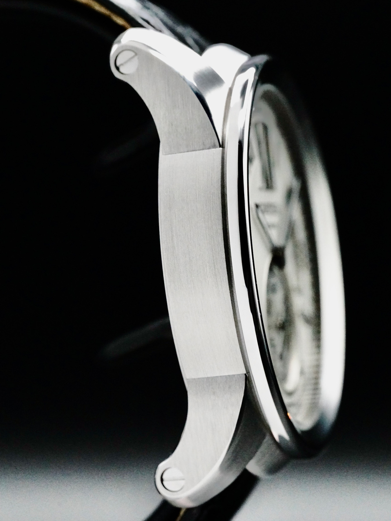 This watch features a 42 mm stainless steel case on leather strap. This watch also sports a silver dial. Powered by a mechanical automatic movement. Water resistance up to 30 meters.