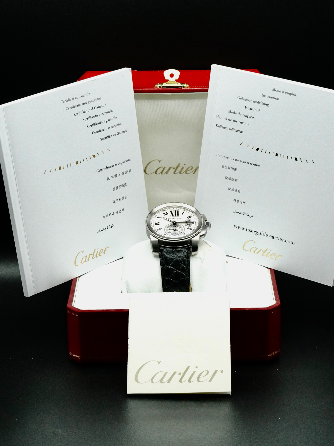 This Calibre de Cartier W7100037 is in EXCELLENT condition. This watch includes its original box, original papers and warranty card dated 2016. This watch has been fully authenticated and certified by Exquisite Timepieces.