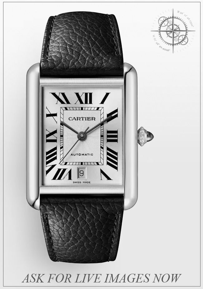 This watch features a 41mm x 31mm steel case on black grained calfskin strap. This watch also sports a silver dial. Powered by a self-winding mechanical movement. Water resistance up to 30 meters.