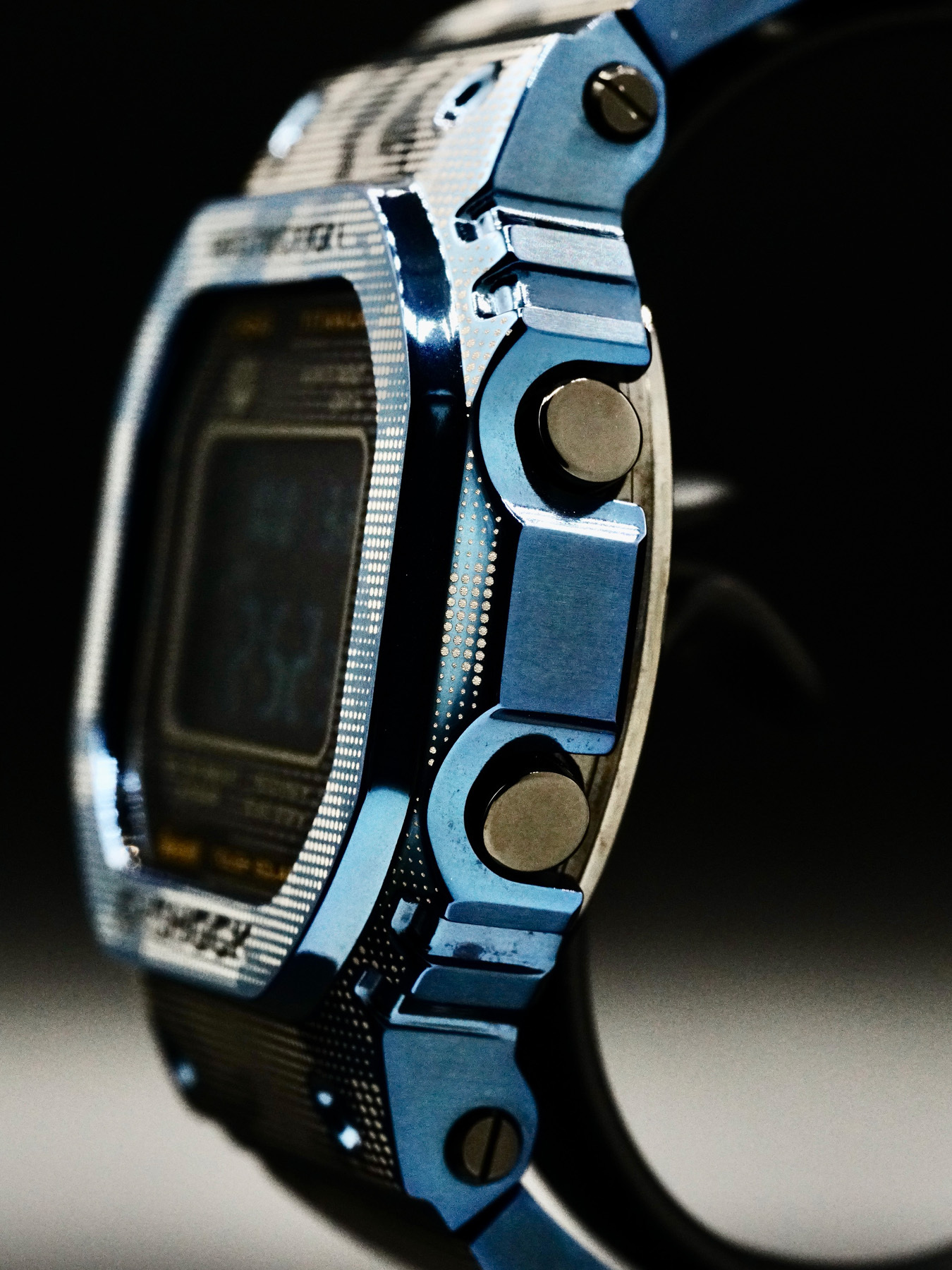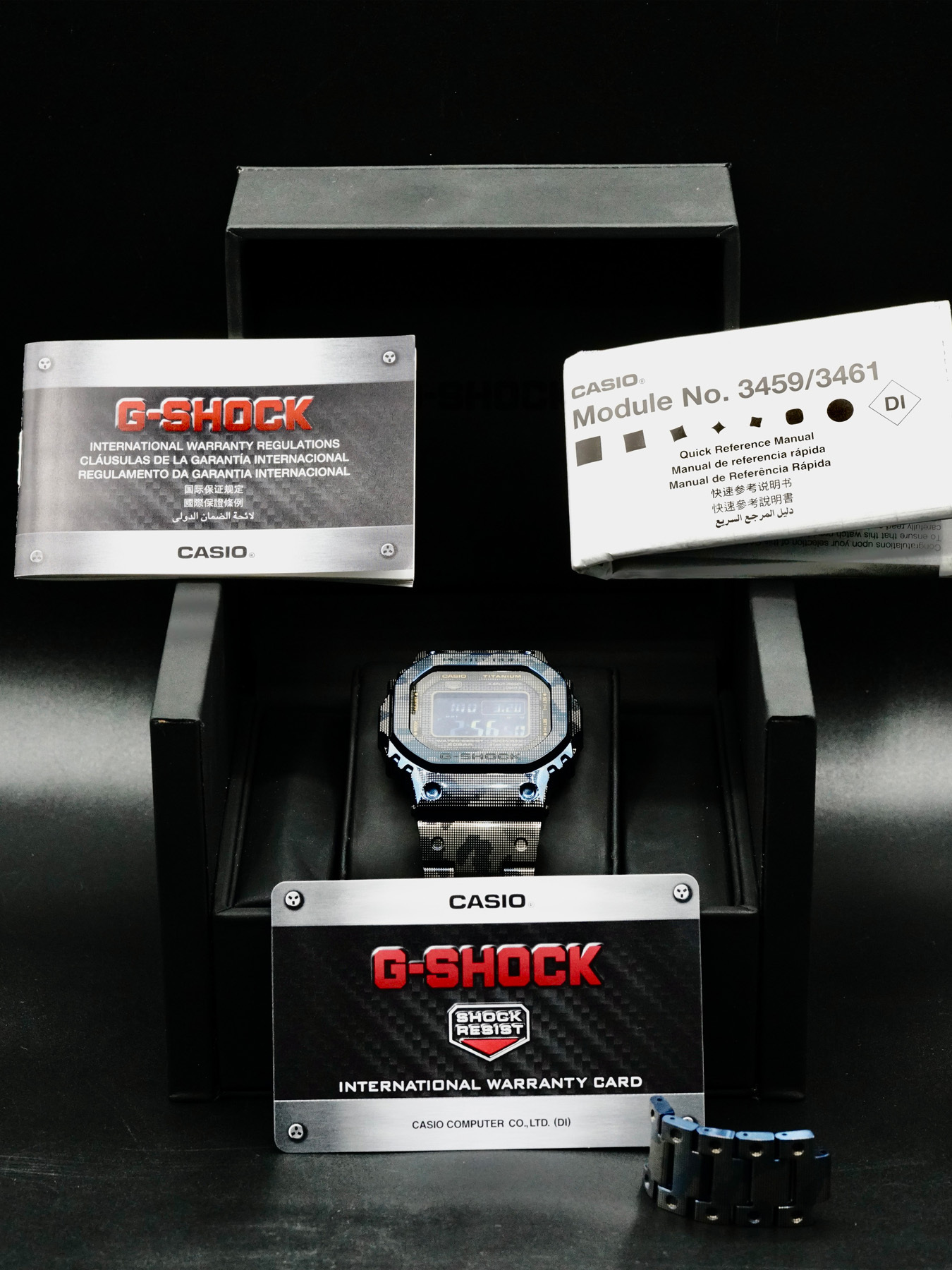 The DW-5000C is the original G-Shock model from 1983. The GMW-B5000 camouflage model has inherited the characteristic square design and been given the full metal treatment along with upgraded features including smartphone linking.