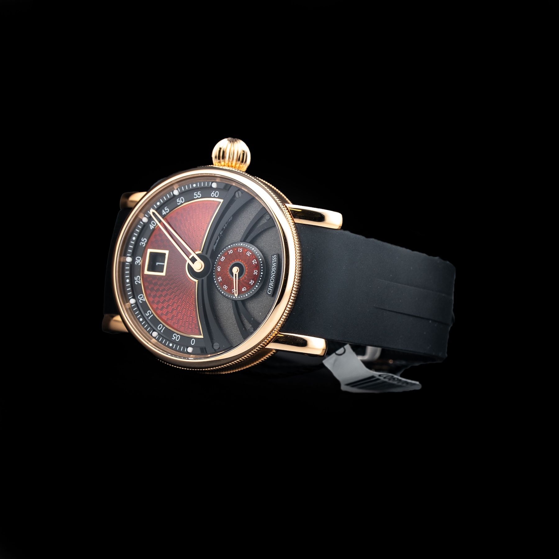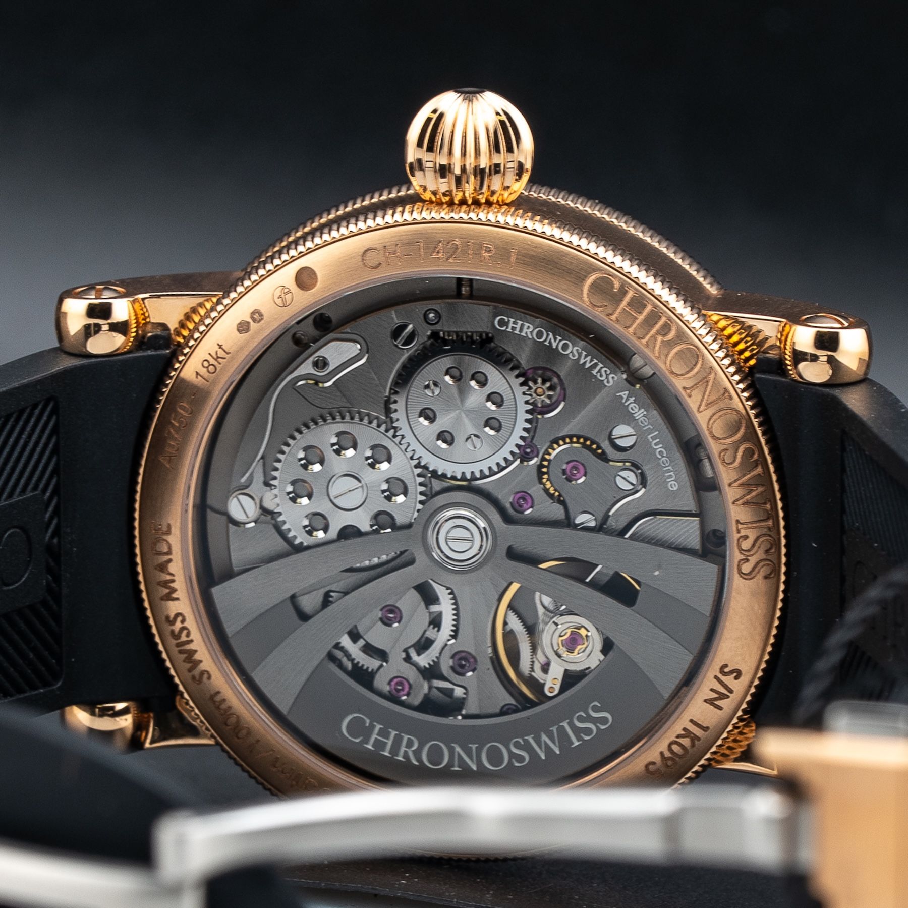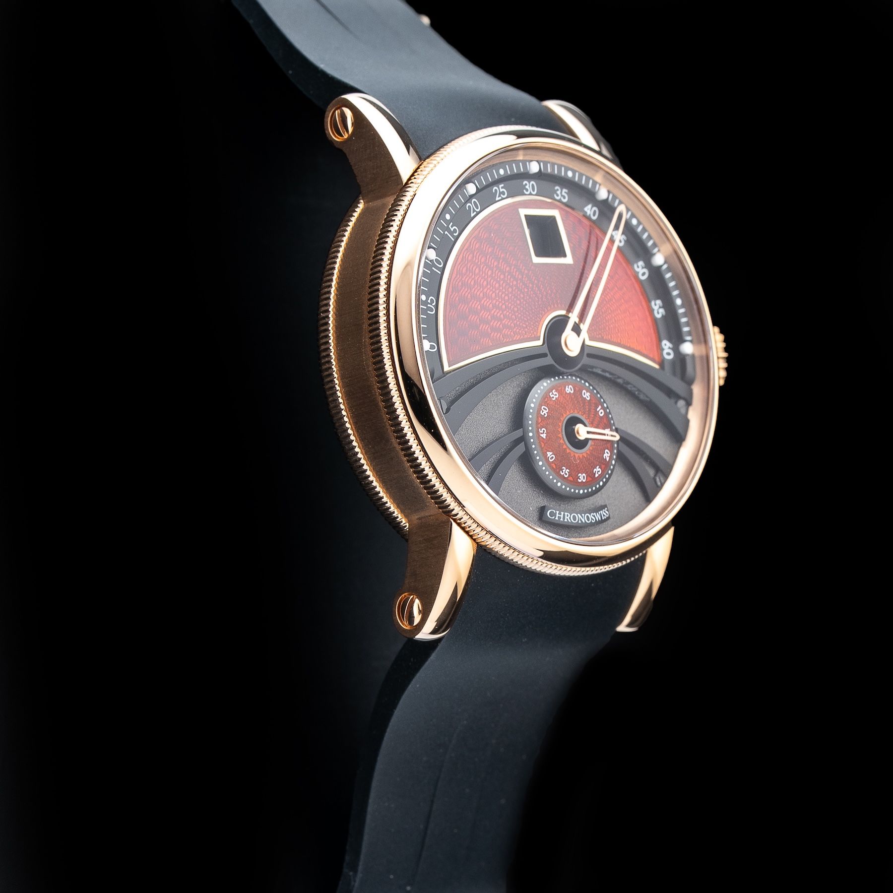 Chronoswiss chooses gold for its timeless elegance and enduring value. Known for its remarkable malleability and resistance to tarnish, gold has been cherished throughout history for its beauty and rarity. Chronoswiss uses solid 18ct gold, ensuring the perfect balance between durability and luxurious appeal. Whether used in the intricate details of a dial or the robust case of a watch, gold provides a timeless touch that elevates every Chronoswiss timepiece to a work of art.