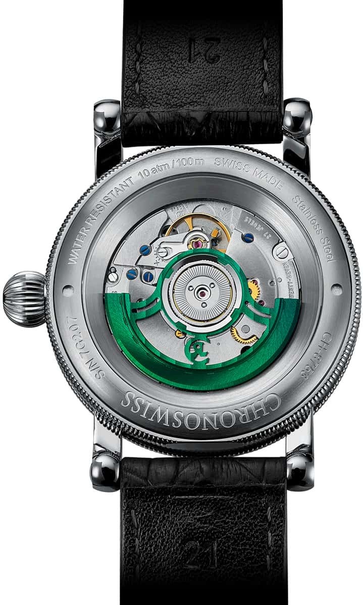 The design of this timepiece is a play on the Regulator theme, placing it front and center with the “Open Gear” design. The dial is simultaneously its module board, onto which the train wheel bridges of the skeletonized gears are mounted.