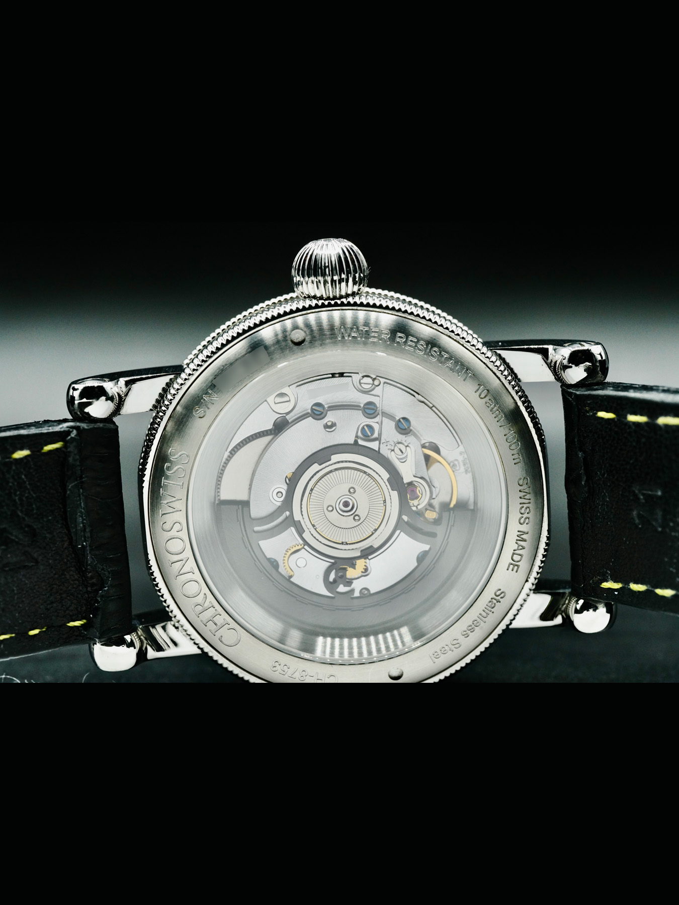 Powered by a mechanical automatic movement. Water resistance up to 100 meters.