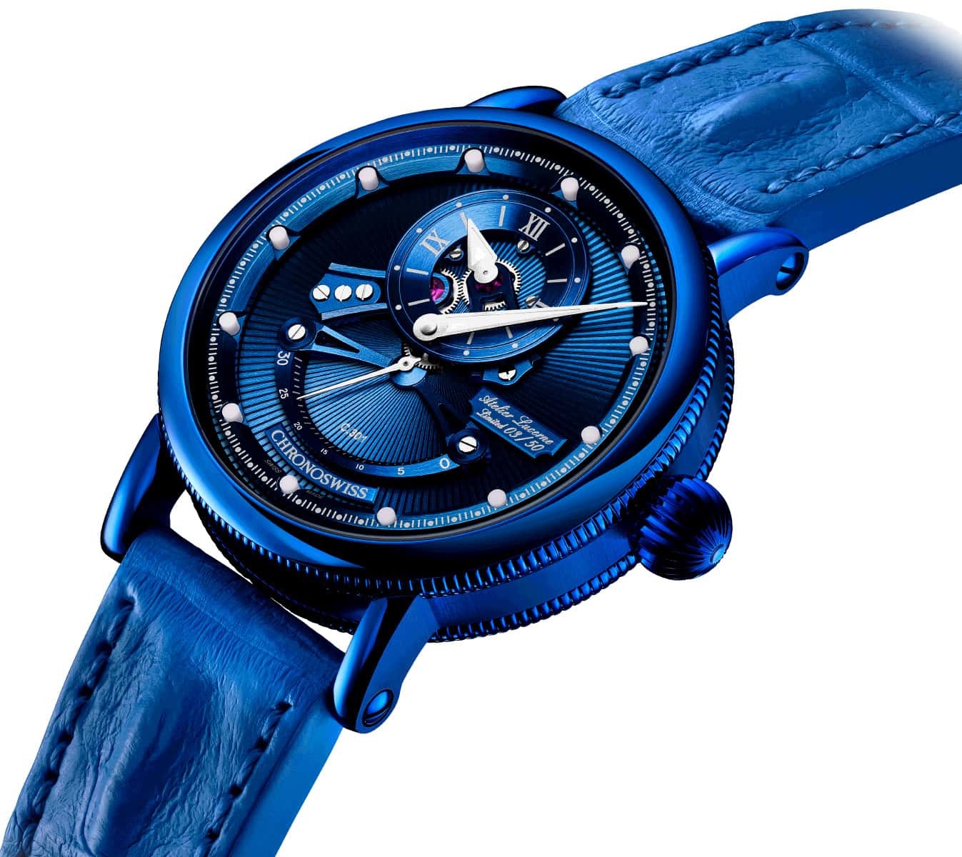 Electrifying! All blue, transitory like thunder & intense like electricity, Chronoswiss offers a very trendy vision of Haute Horlogerie with a diameter of 44 mm – for those who are not afraid to break free from codes and conventions and to follow their own watchmaking path.